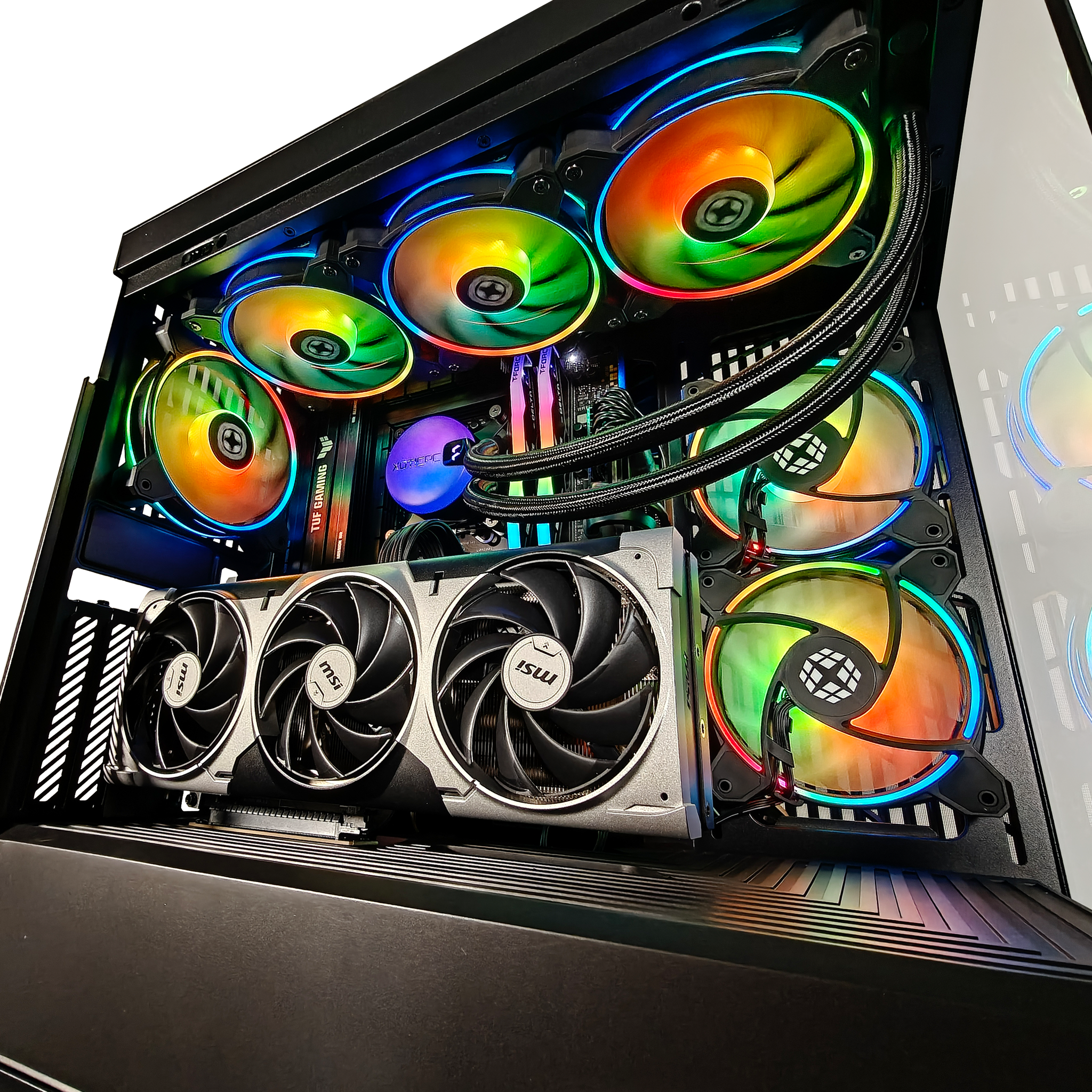 Cooling? Locked in. A 360MM AIO water cooler and Cooler Master MF120 fans keep temps low. so you can push harder without hesitation. Wrapped in the Y40's precision-engineered panoramic glass chassis. this build offers future-proof GPU compatibility. ultra-clean cable management. and a design that demands attention. This is how you set the standard.