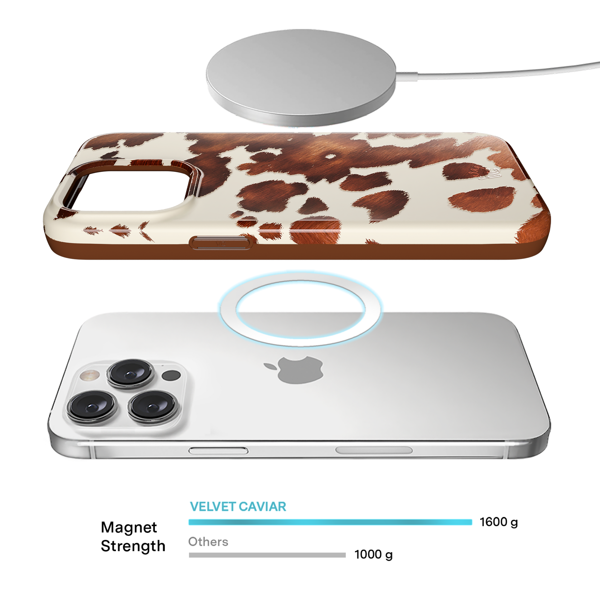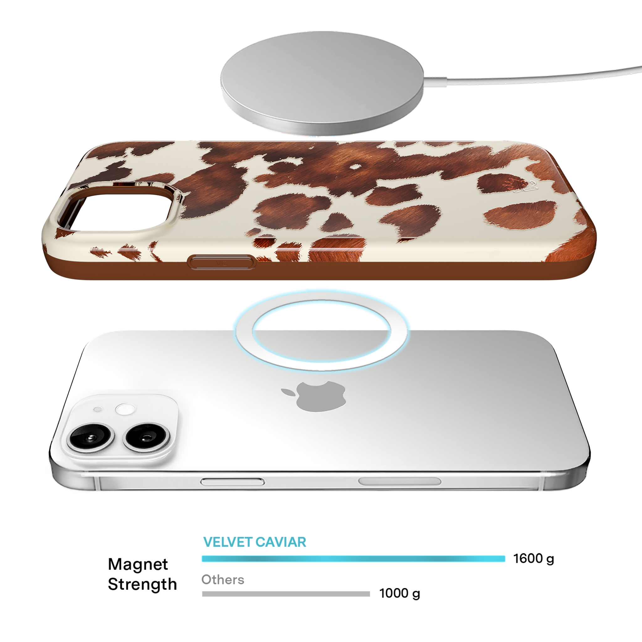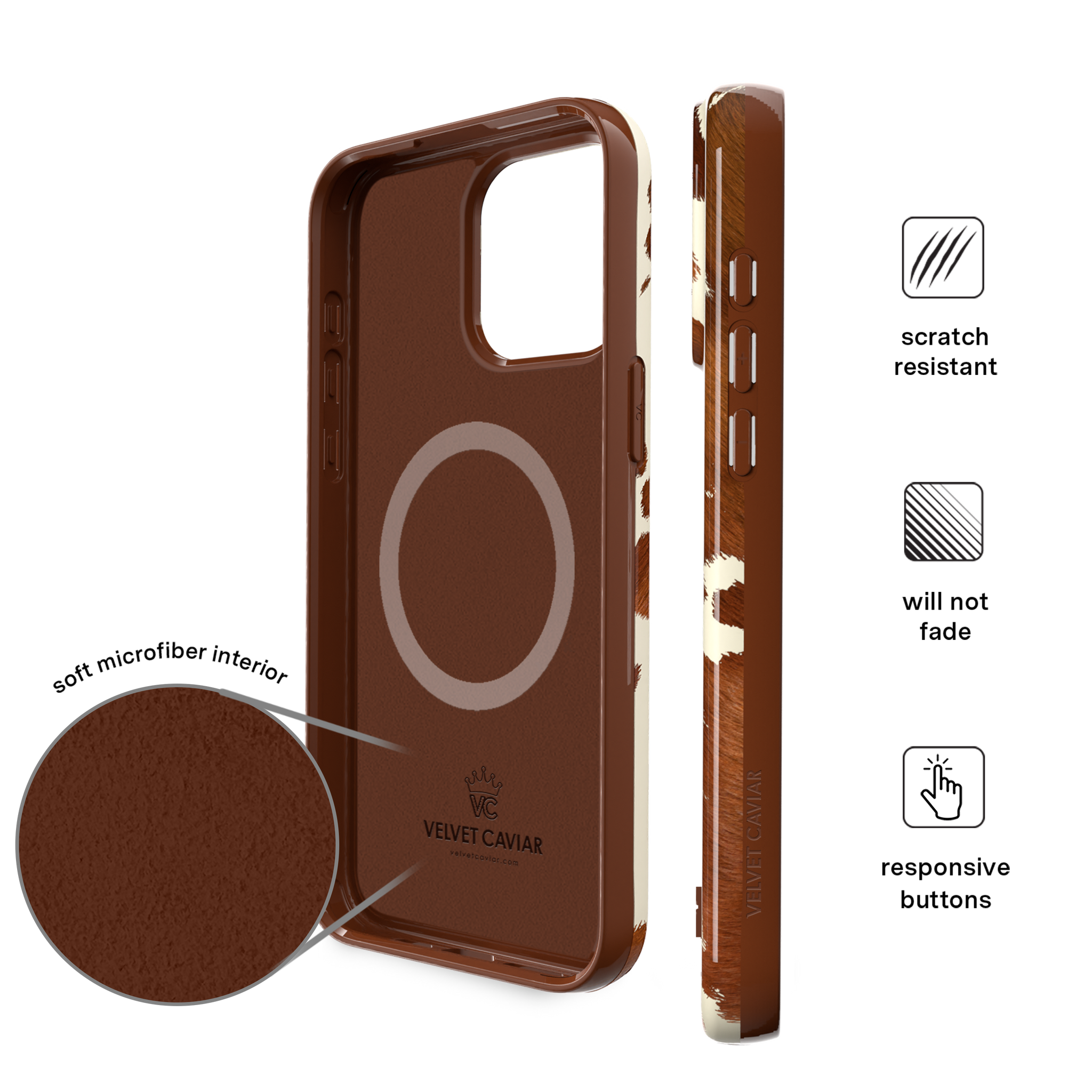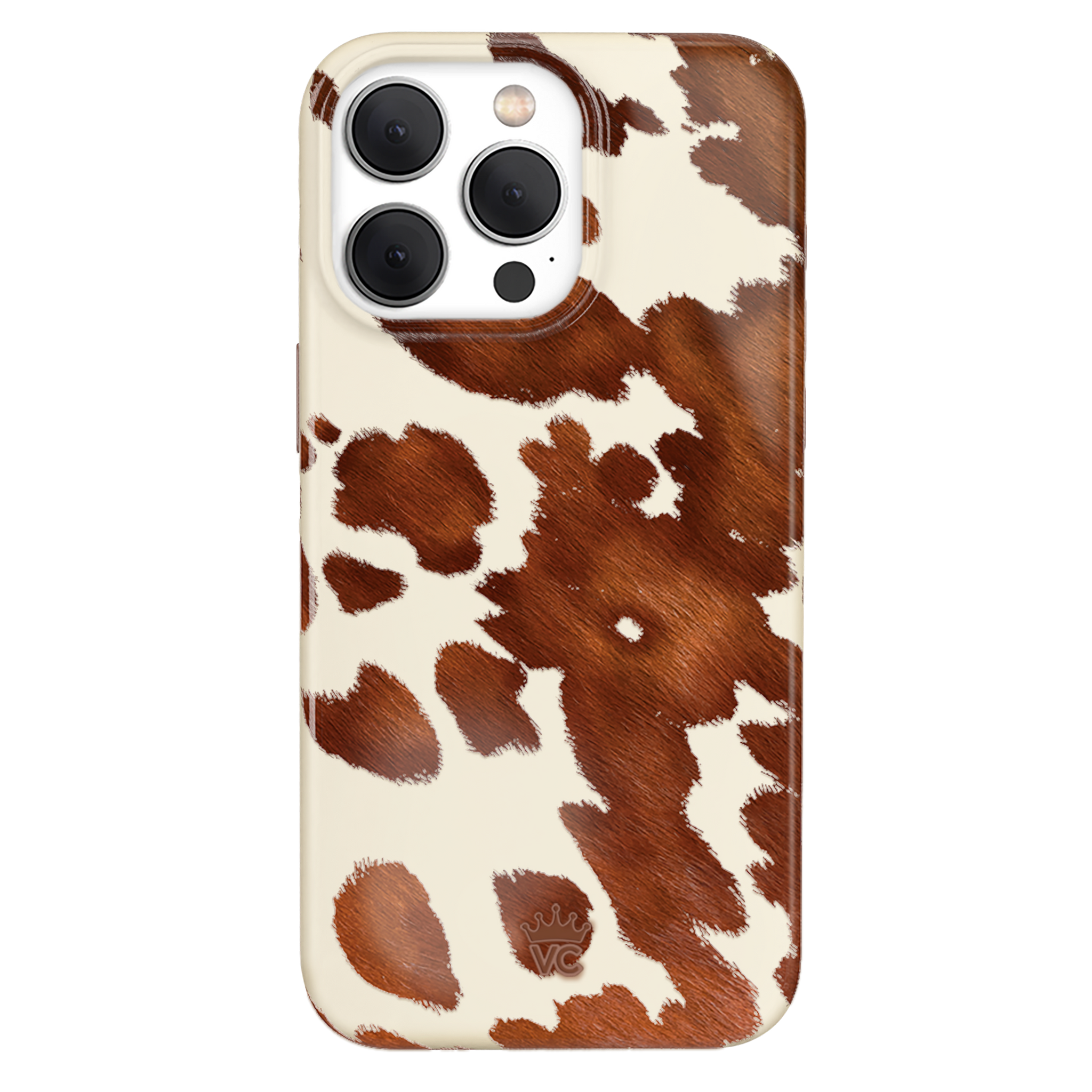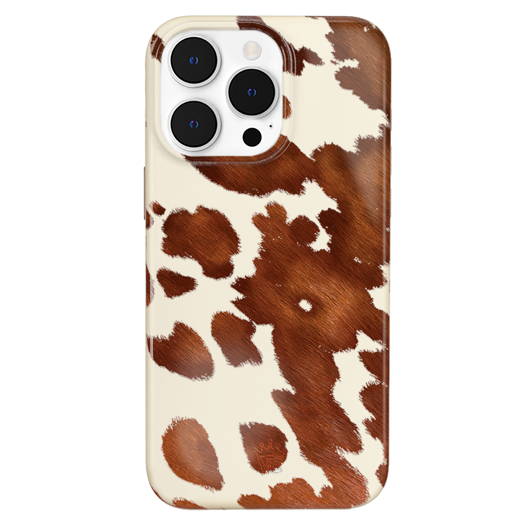 Cowboy Core! Embrace western rodeo style with this MagSafe case featuring a realistic cow print with glossy warm brown spots on a matte eggshell base.