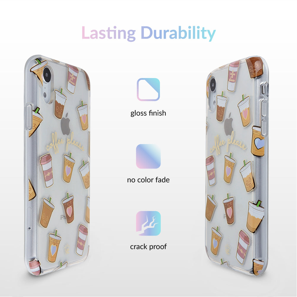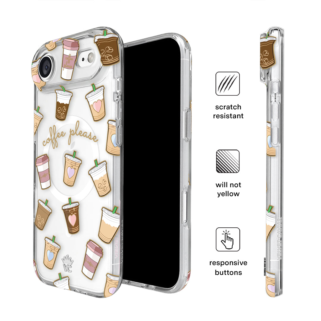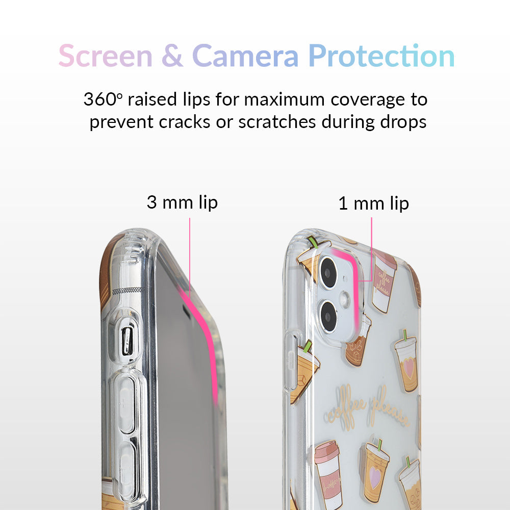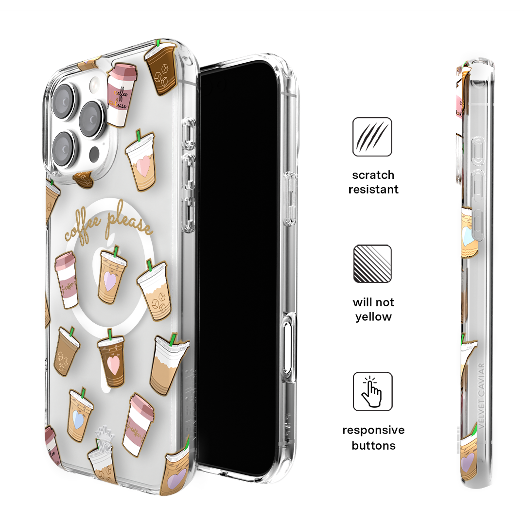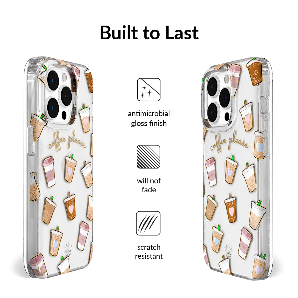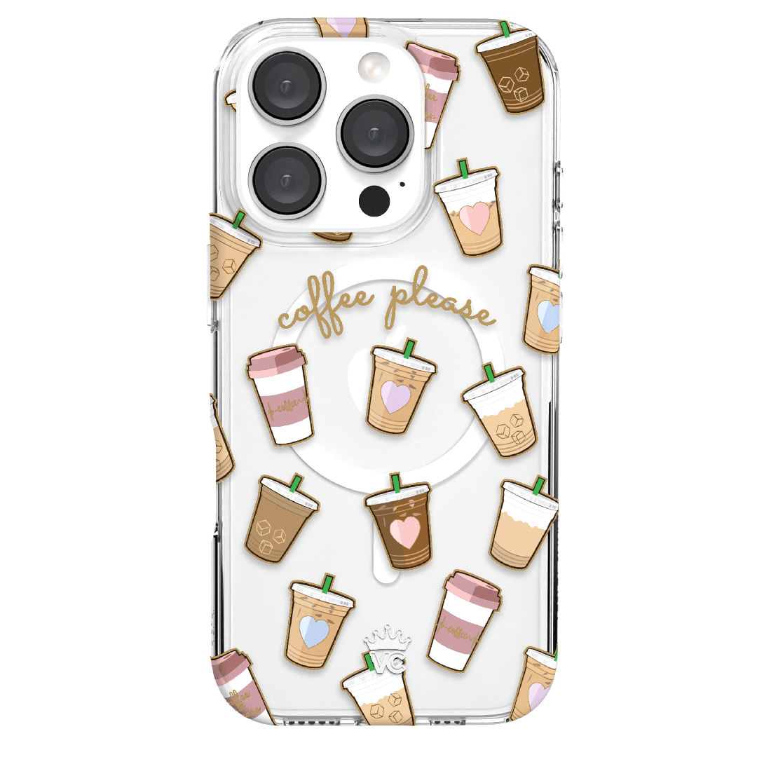 Don't talk to me until I've had my… This protective. clear case has a super cute coffee pattern with gold chrome accents