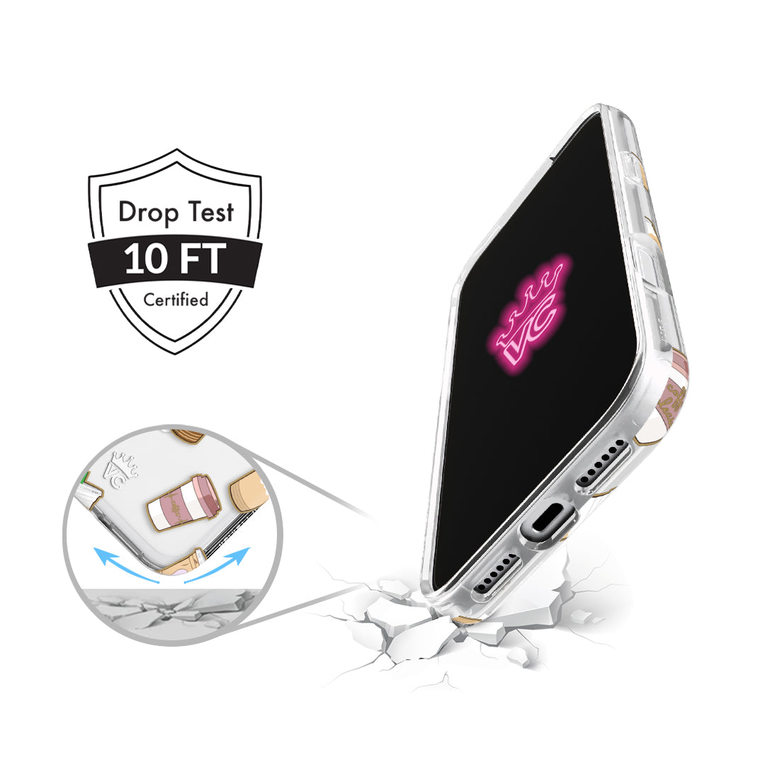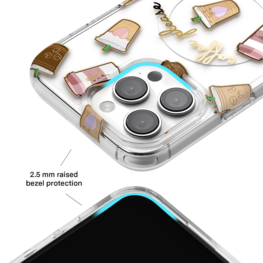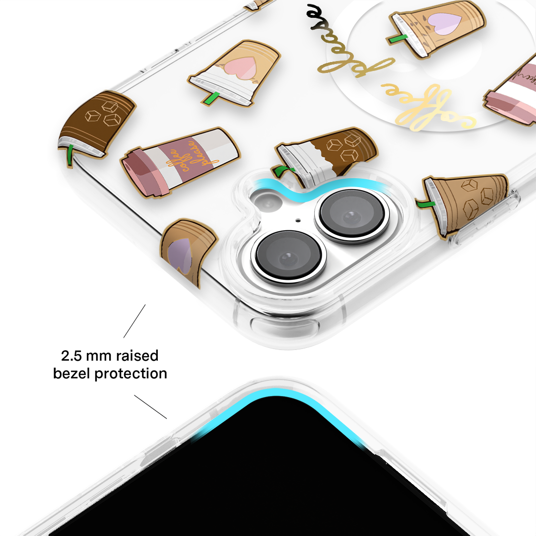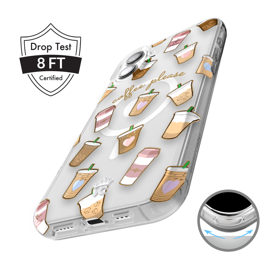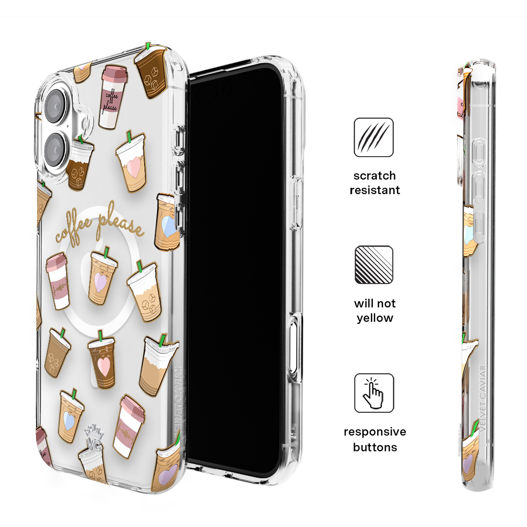 Don't talk to me until I've had my… This protective. clear case has a super cute coffee pattern with gold chrome accents