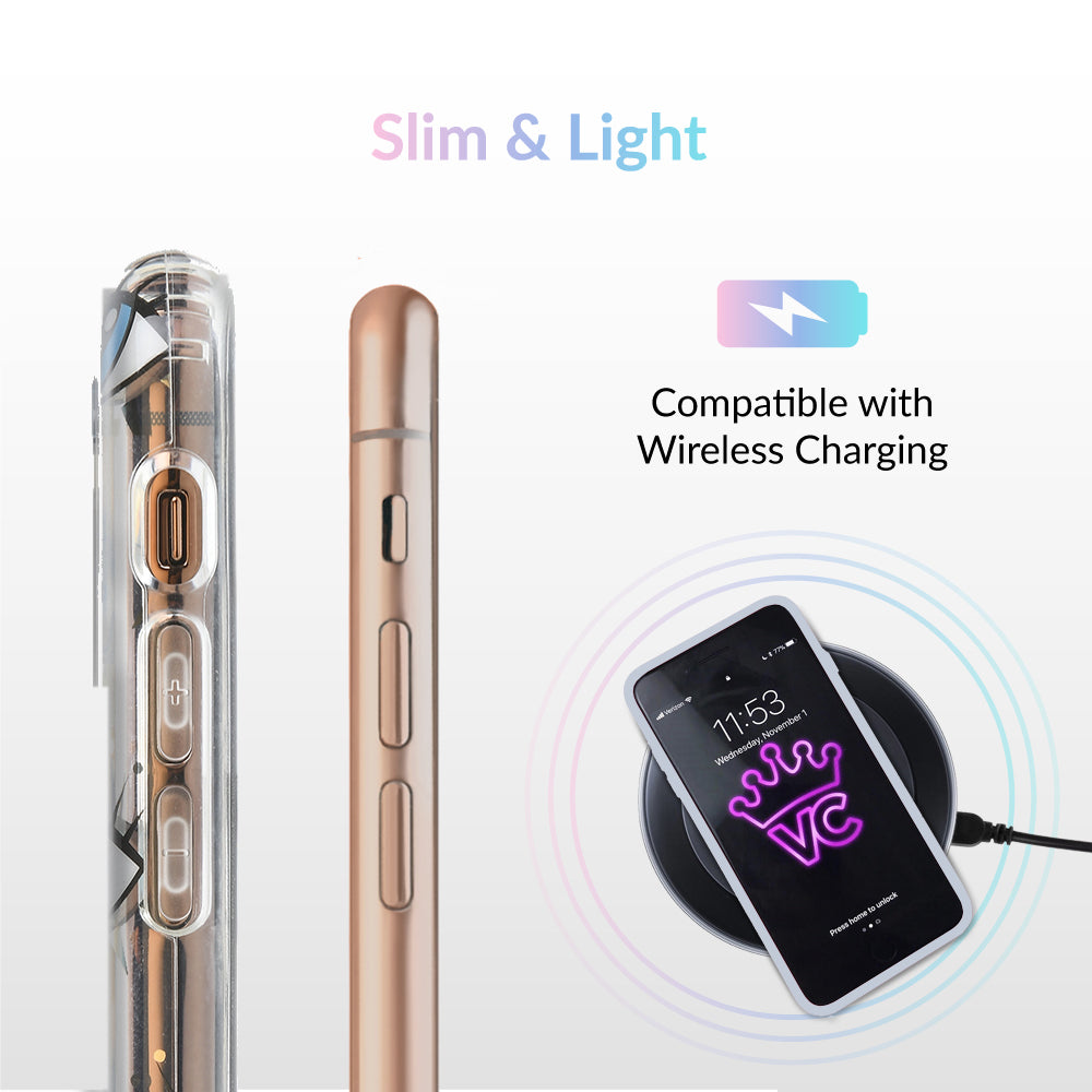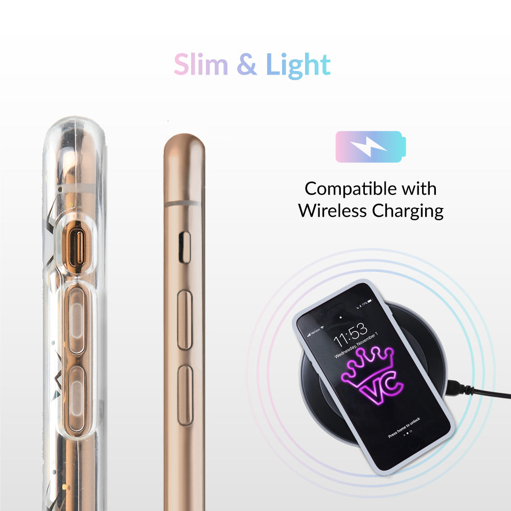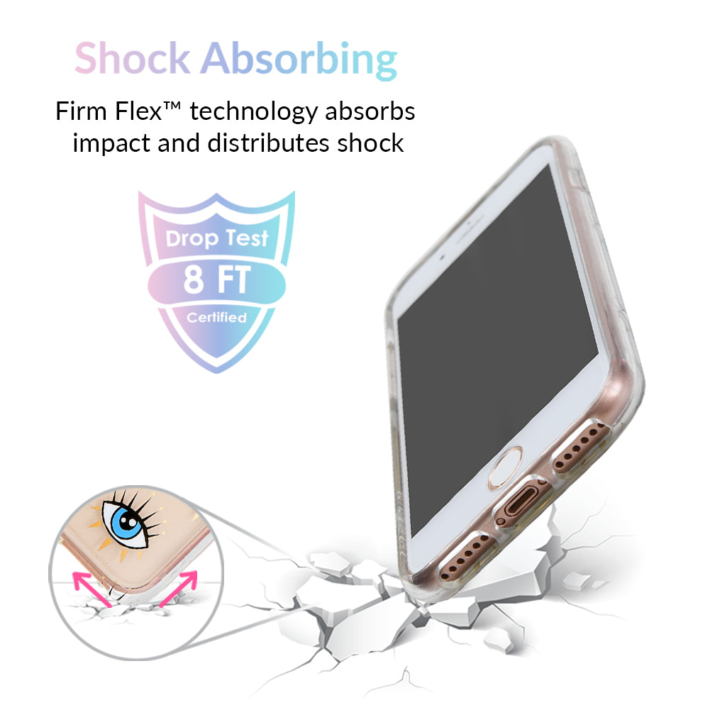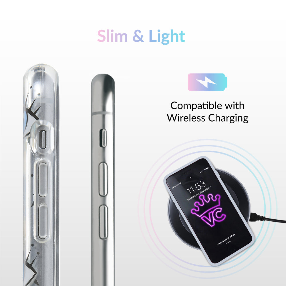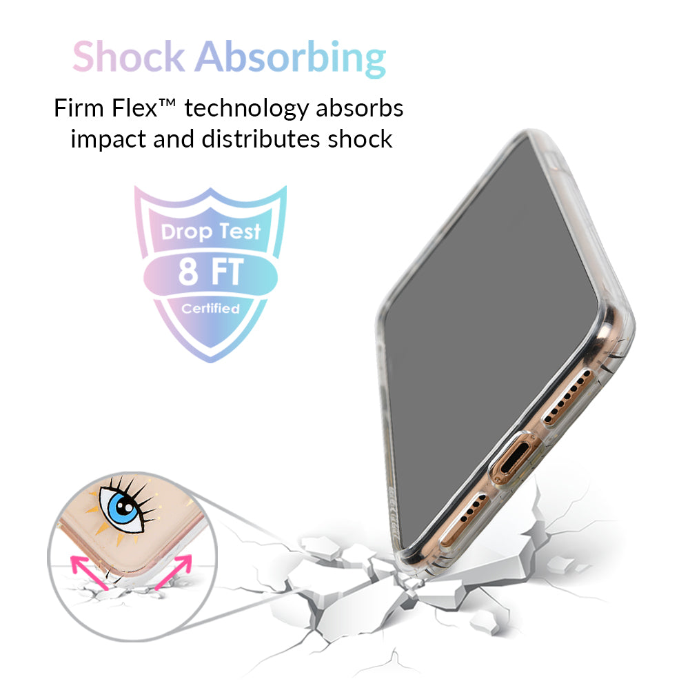 This protective clear case is covered in hand-drawn eye pattern with shiny chrome effects to block out all the negative vibes!
