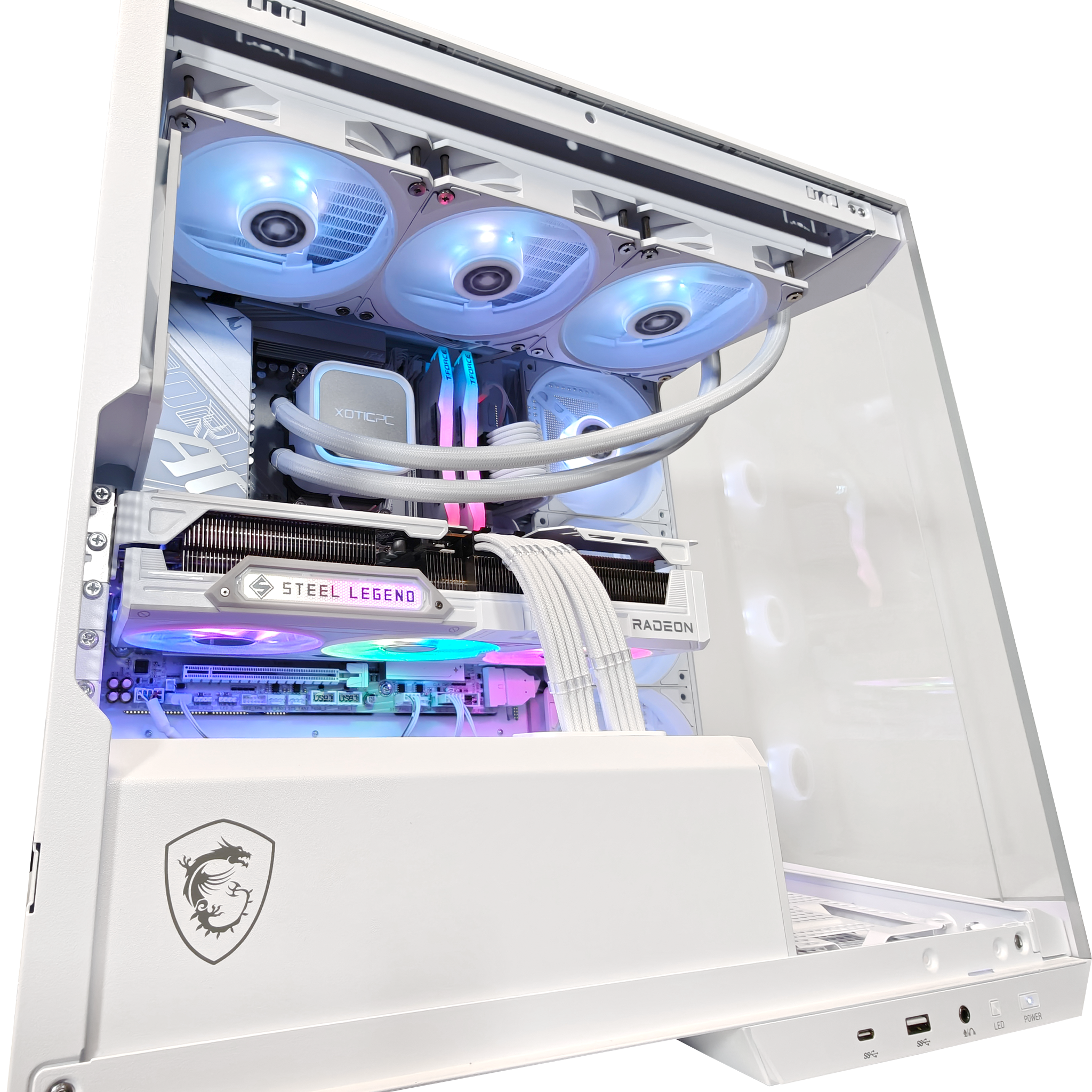 Inside. it's all about performance. Powered by the AMD AMD Ryzen™ 7 7800X3D. this beast delivers 8 cores pushing up to 5.0GHz for lightning-fast speeds. Paired with the AMD Radeon™ RX 9070 XT. your games and creative workloads run smoother than ever. The MSI PRO B850M-A WIFI PZ motherboard keeps everything locked in with next-gen connectivity. while 32GB of DDR5 5200MHz T-Force White Delta RGB memory ensures seamless multitasking. Storage? A lightning-fast 2TB NVMe Gen 4 SSD means near-instant load times.