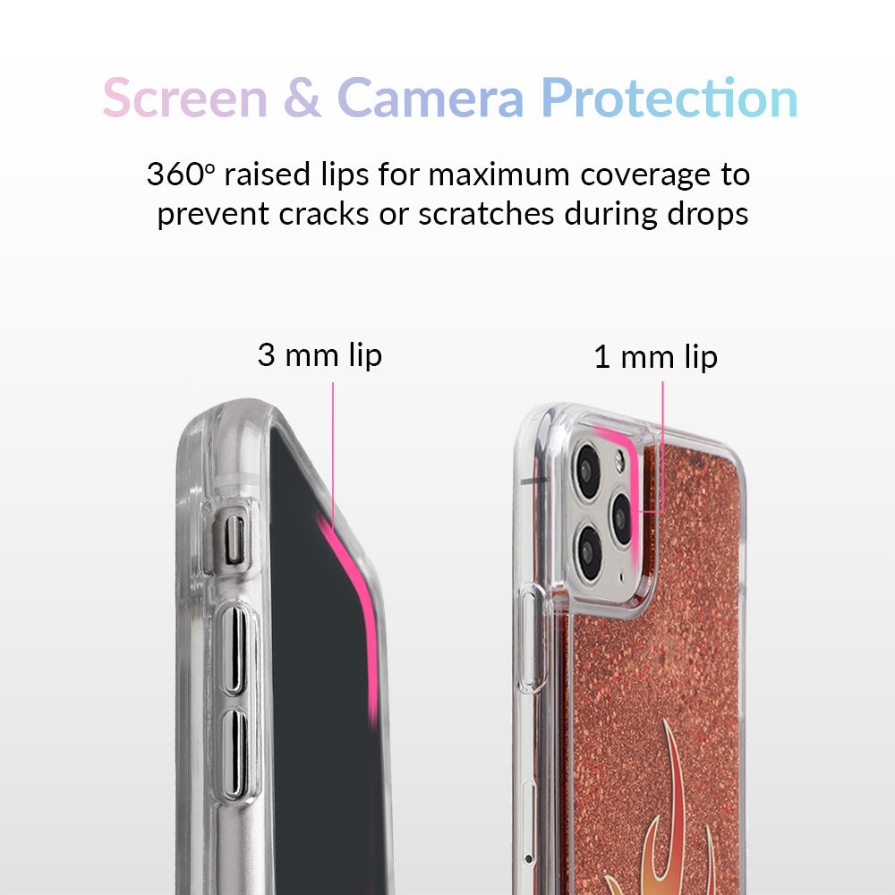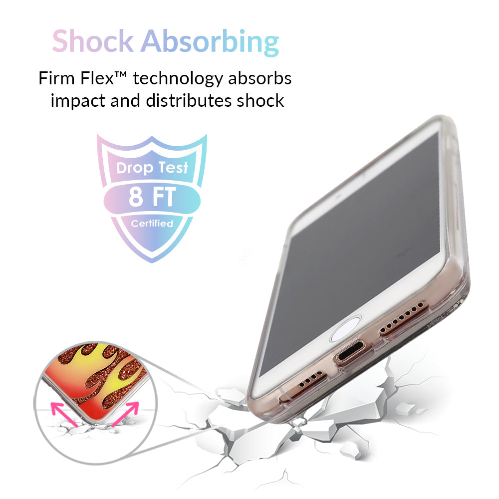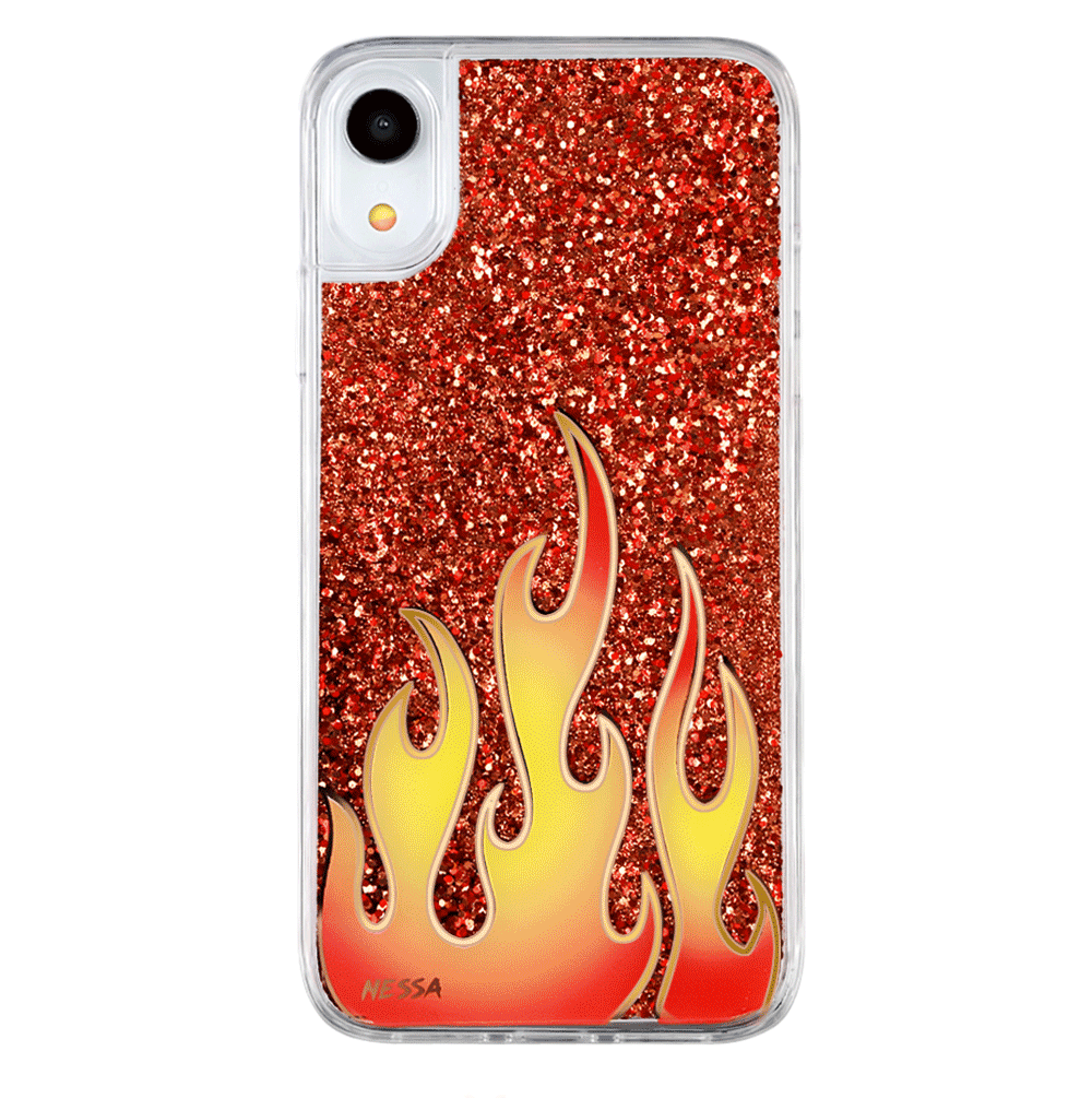 For all the wild ones out there. this case is fire! It's filled with floating red glitter and decorated with a red and yellow flame on the outside.