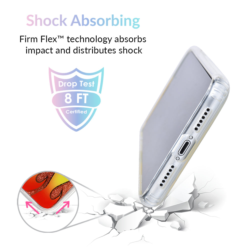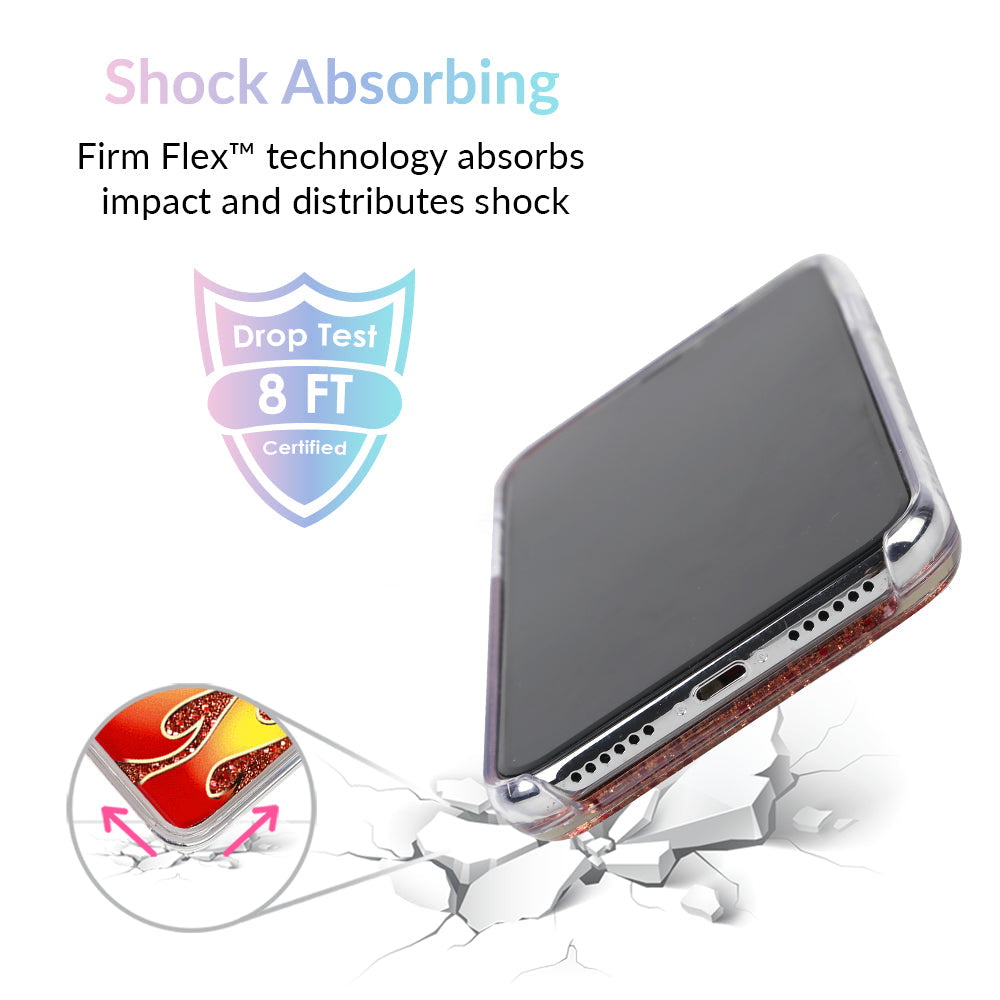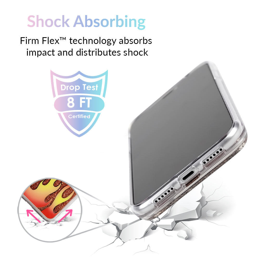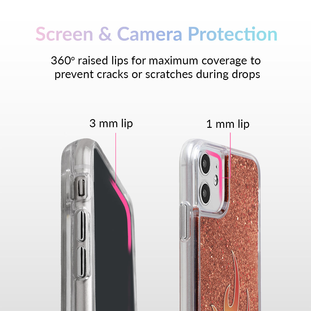 For all the wild ones out there. this case is fire! It's filled with floating red glitter and decorated with a red and yellow flame on the outside.