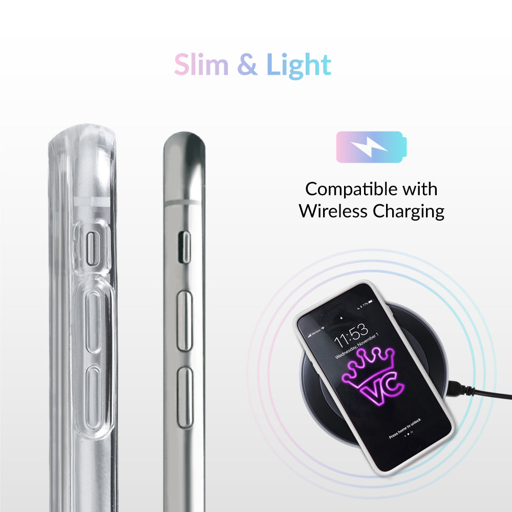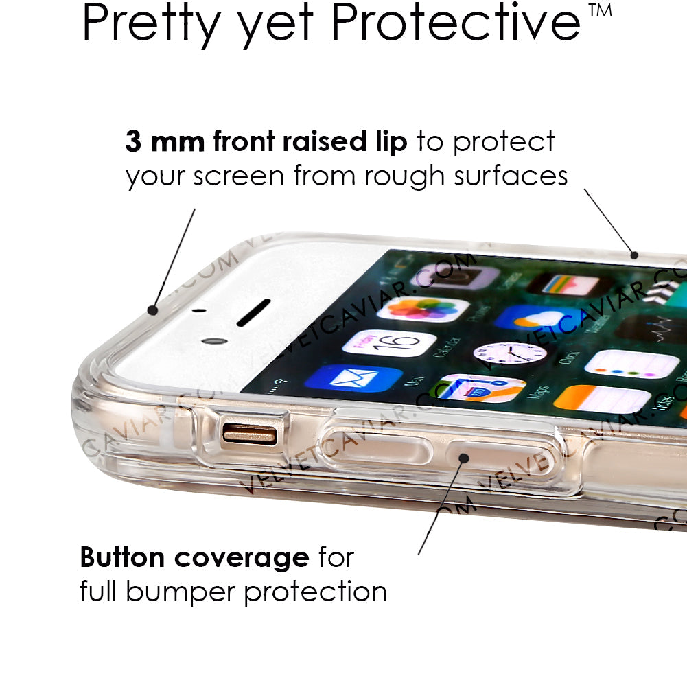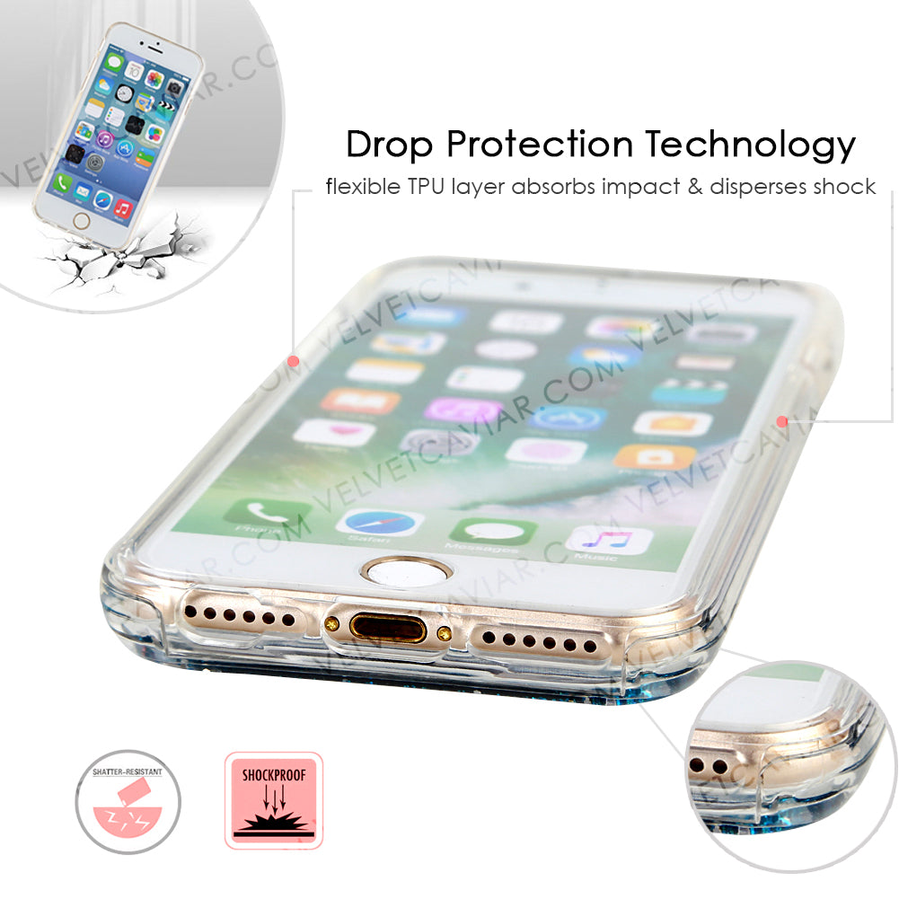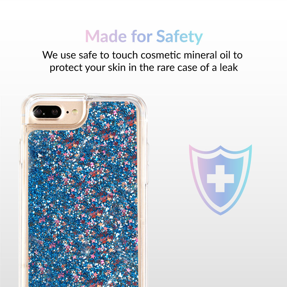 This protective clear case is filled with shimmering silver stars and blue holographic glitter like a night sky on the back of your phone!