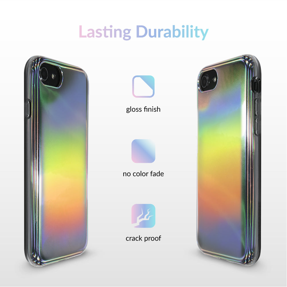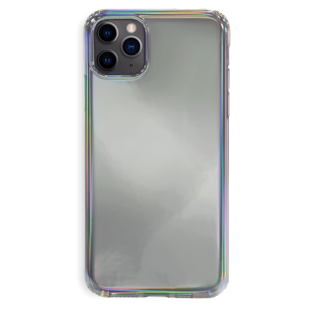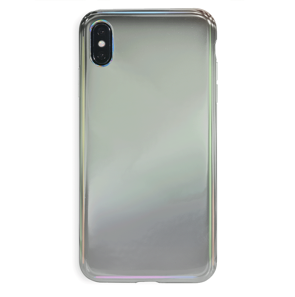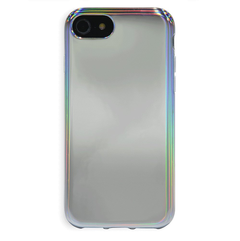 This case features a chromatic rainbow spectrum shimmer over a solid silver. protective case.