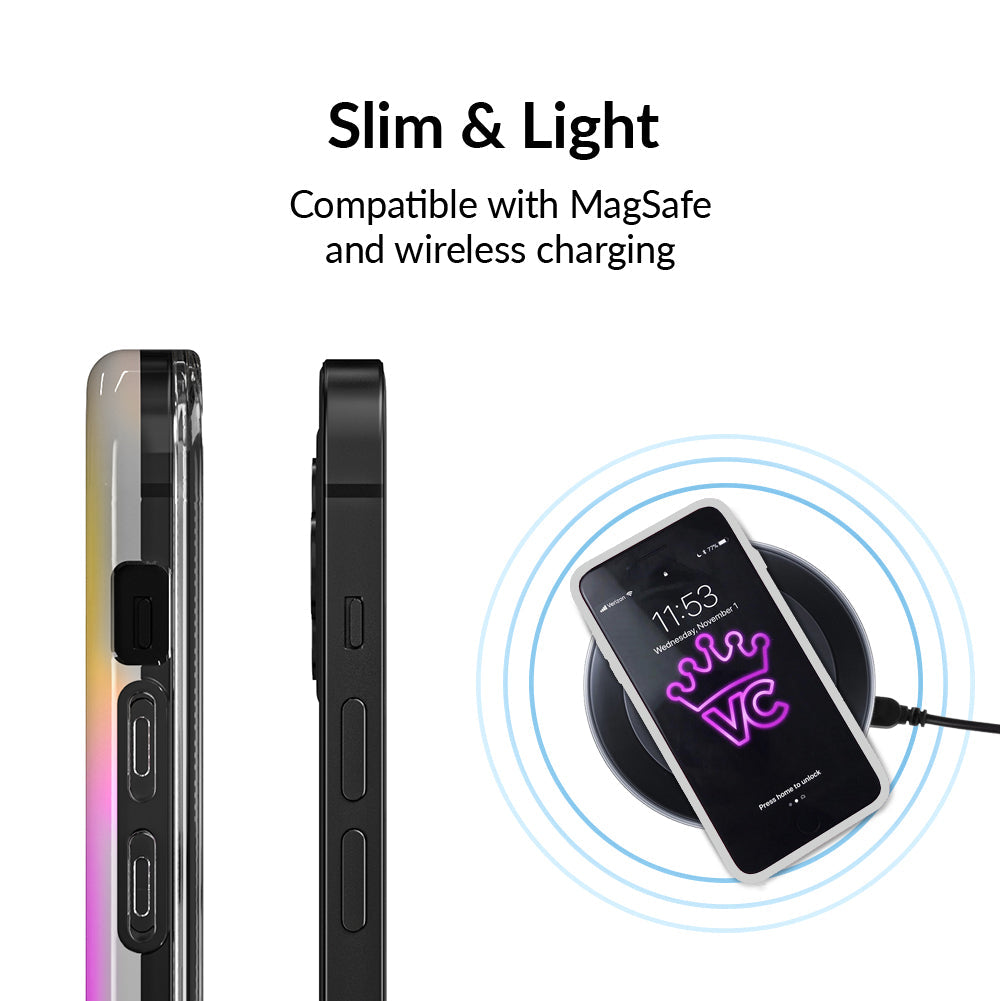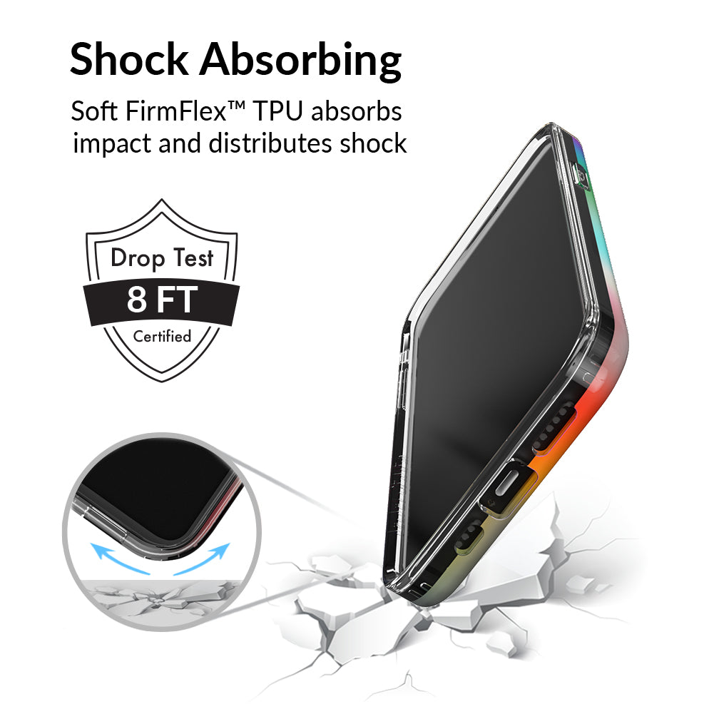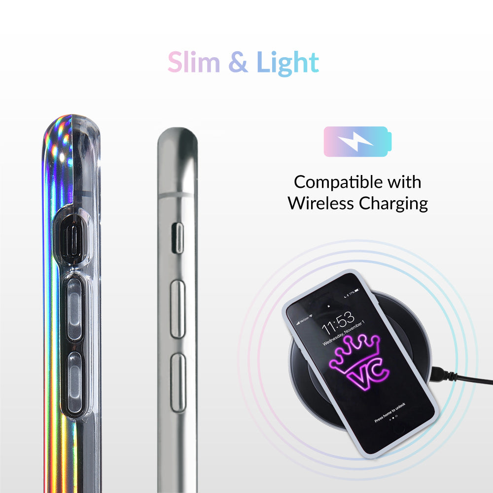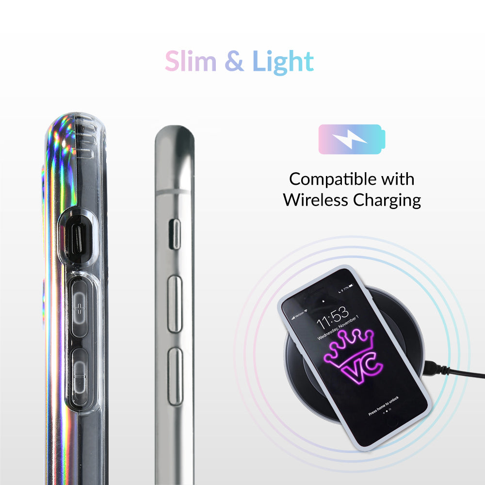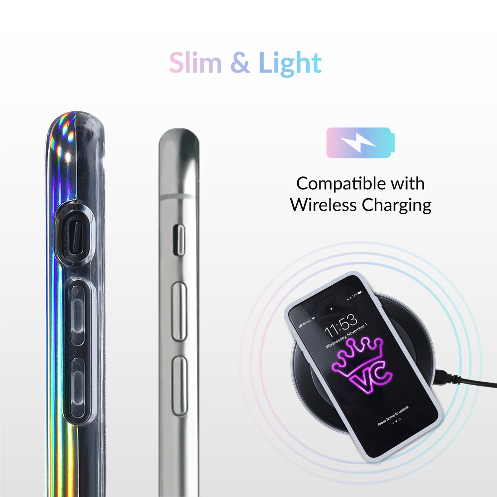 This case features a chromatic rainbow spectrum shimmer over a solid silver. protective case.