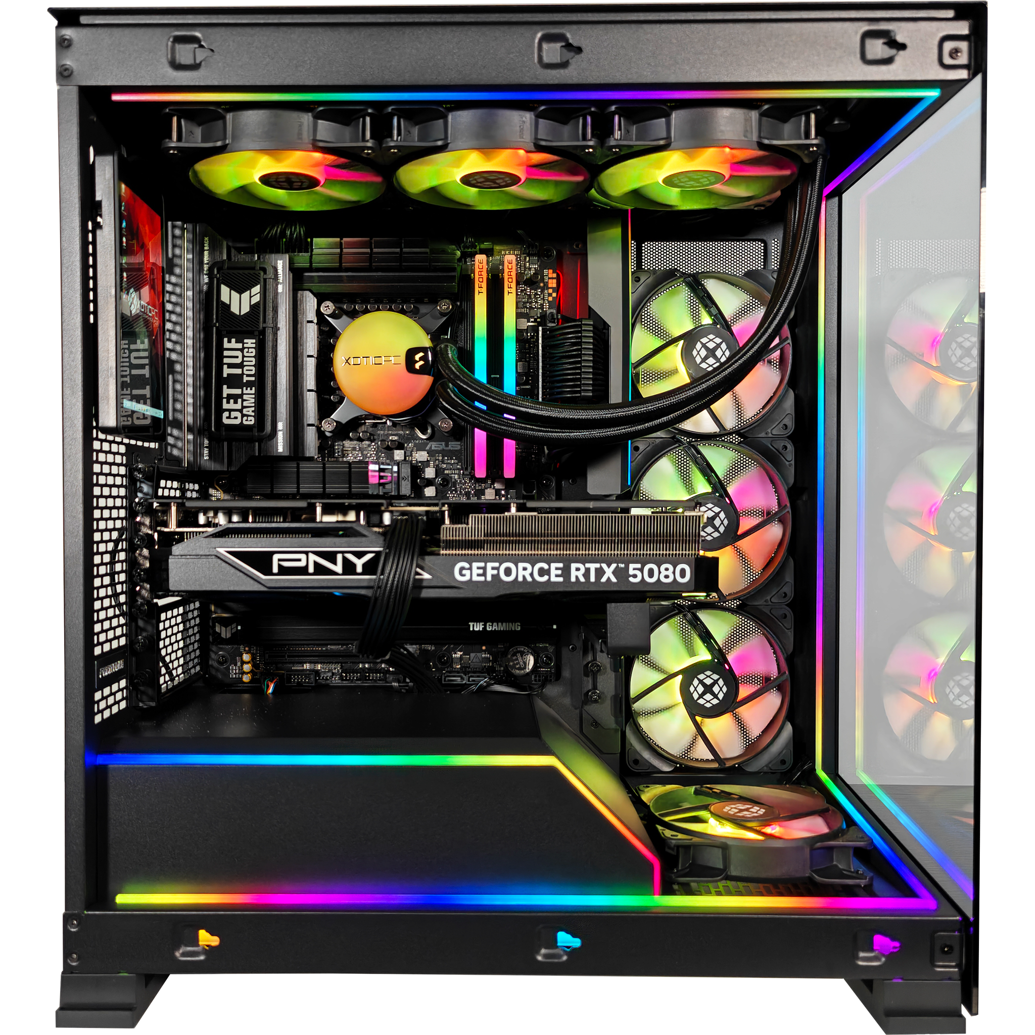 The NV5 Ultimate is a powerhouse of design and functionality. built for those who demand both high performance and striking aesthetics. Its near-seamless glass panel offers an uninterrupted view of your build. while ultra-fine performance mesh panels ensure optimal airflow and dust filtration. The intelligently designed cooling system includes a bottom-mounted fan for enhanced GPU cooling. ensuring your system stays at peak efficiency under heavy loads. Cable management is effortless with a PSU cover that opens for easy access. keeping everything clean and organized. The D-RGB lighting system is fully customizable and syncs seamlessly. creating a bold. immersive visual experience. Powering this beast is an Intel® Core™ Ultra 9 285K processor. delivering blazing-fast speeds up to 5.7GHz across 24 cores and 24 threads. paired with an NVIDIA® GeForce RTX™ 5080 GPU for cutting-edge graphics performance. With its premium build quality and refined engineering. the NV5 Ultimate is more than just a OC—it's a statement of power. precision. and style.