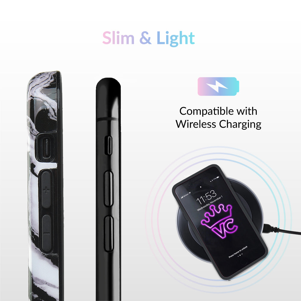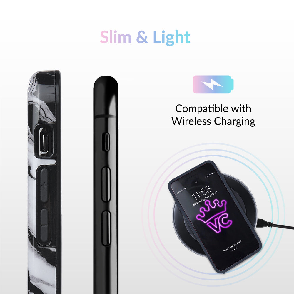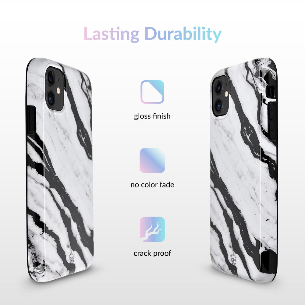 A modern update to the classic black and white marble. This protective case features a sleek black and white high-contrast marble pattern that will match anything!