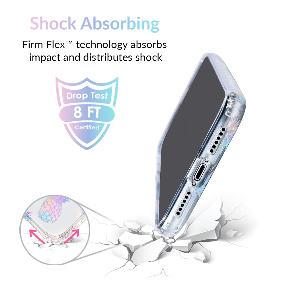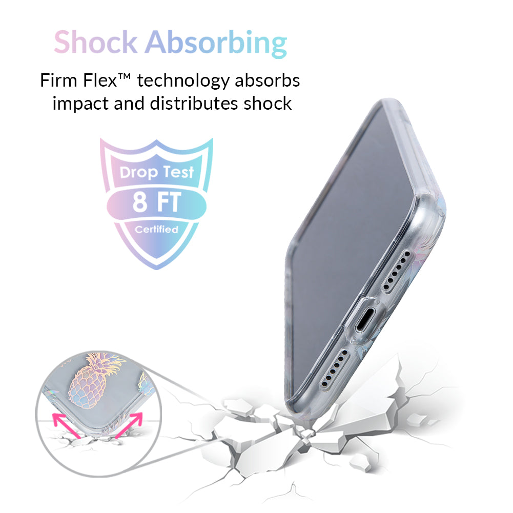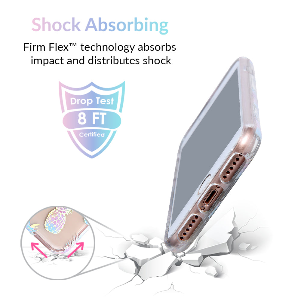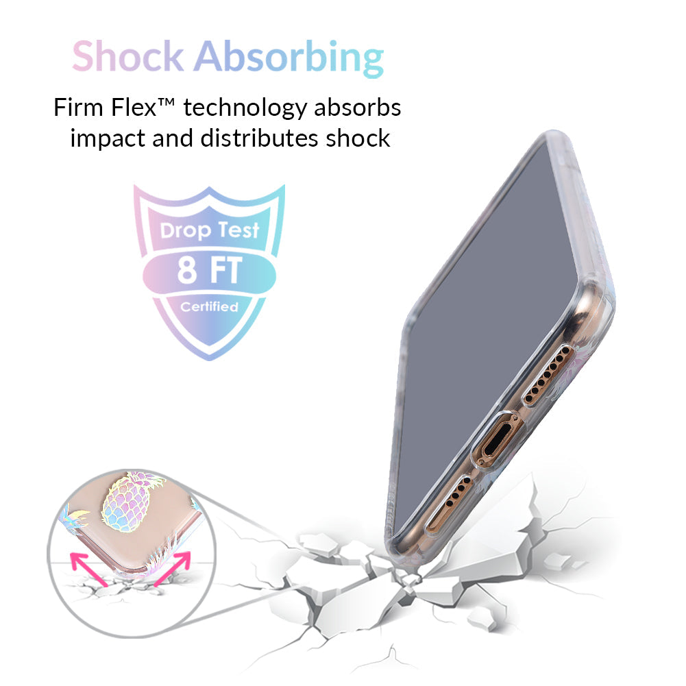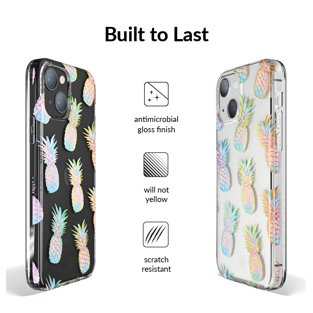 Taste the summer with our Pineapple Holo! This protective clear case has cute hand-drawn holographic pineapples with a matching clear front bumper.