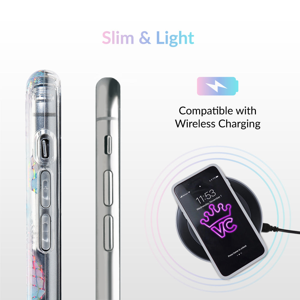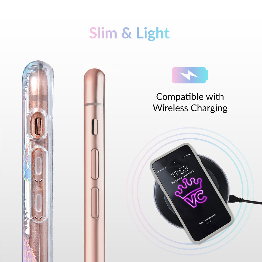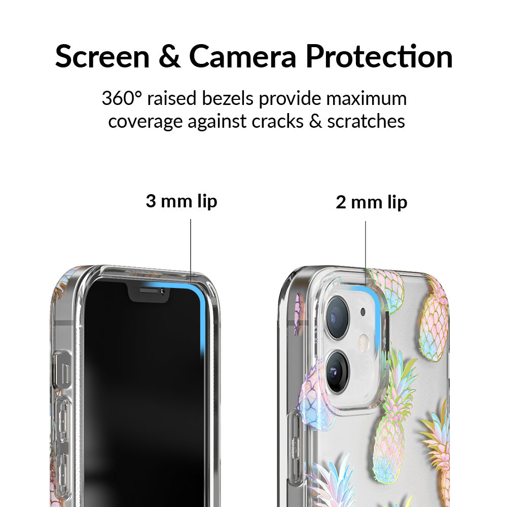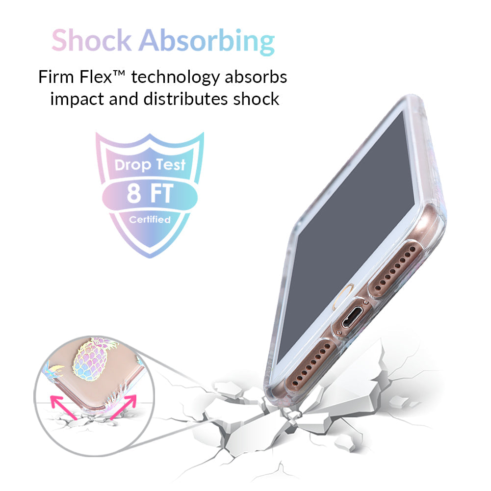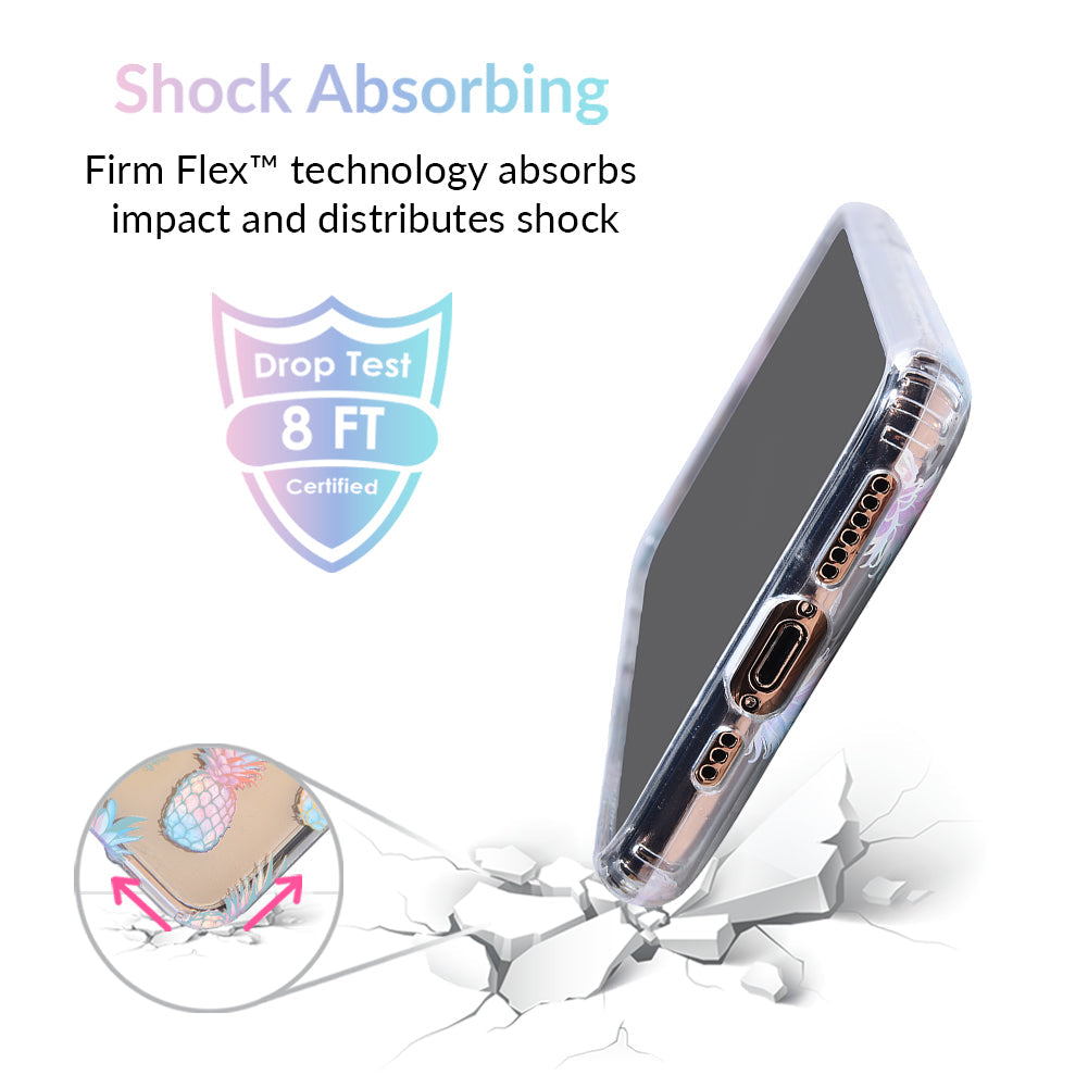 Taste the summer with our Pineapple Holo! This protective clear case has cute hand-drawn holographic pineapples with a matching clear front bumper.