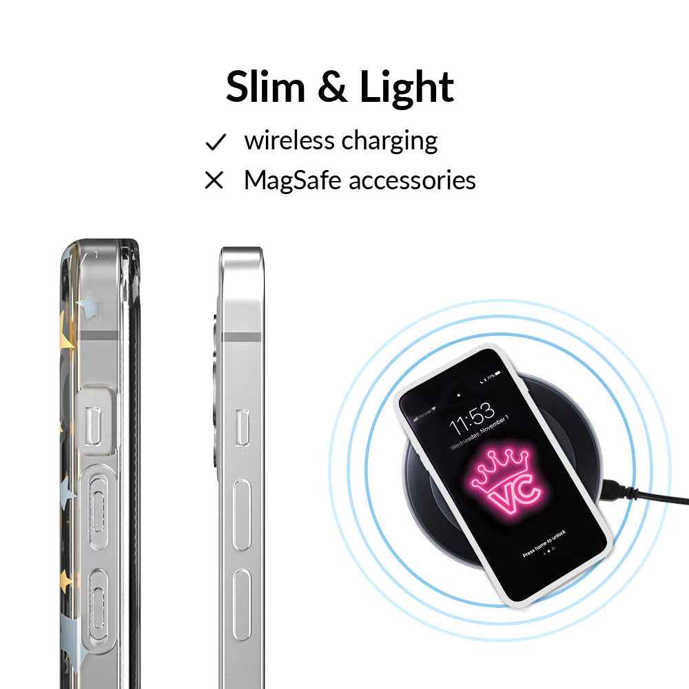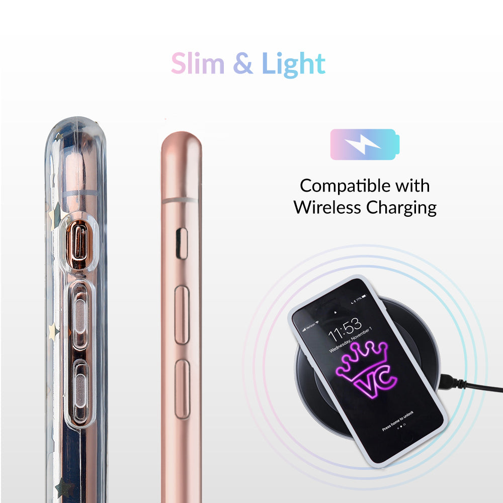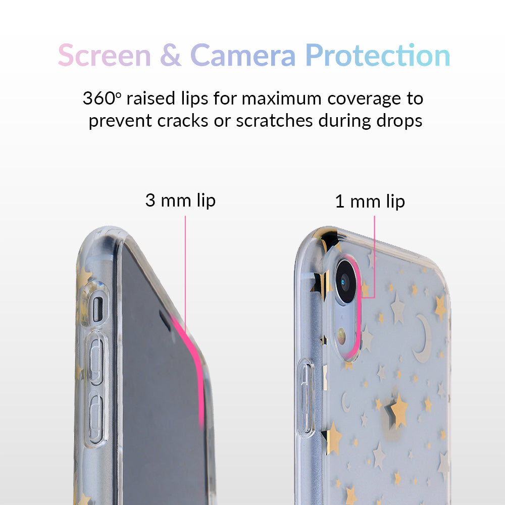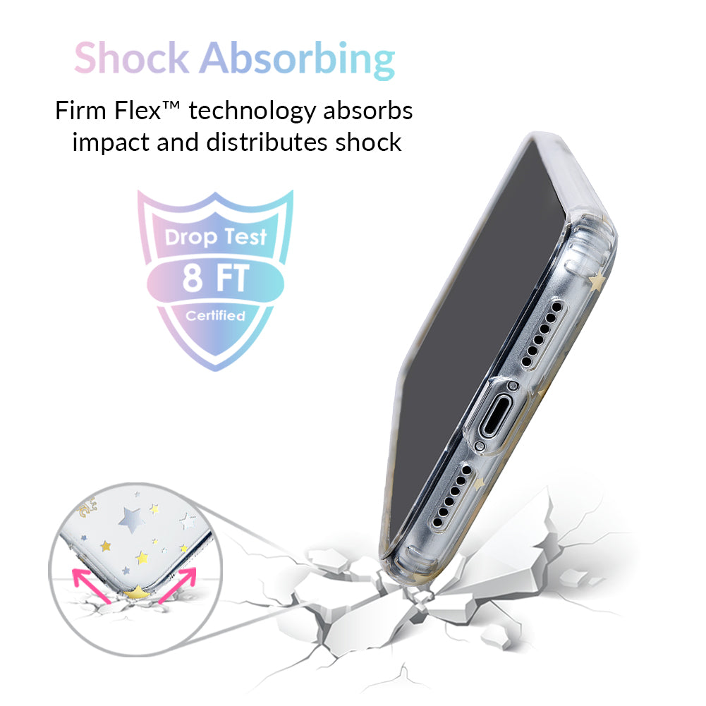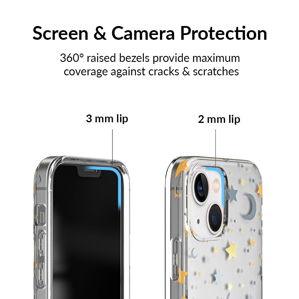 Inspired by our love for the outer galaxy and mysteries of the universe! Featuring a double-layered gold and silver chrome pattern of hand-drawn stars and moons.