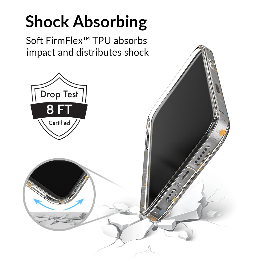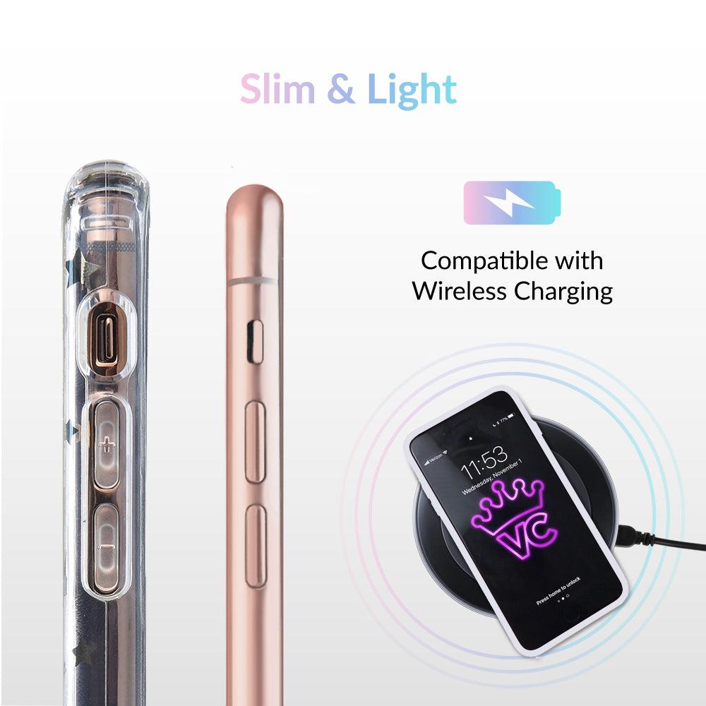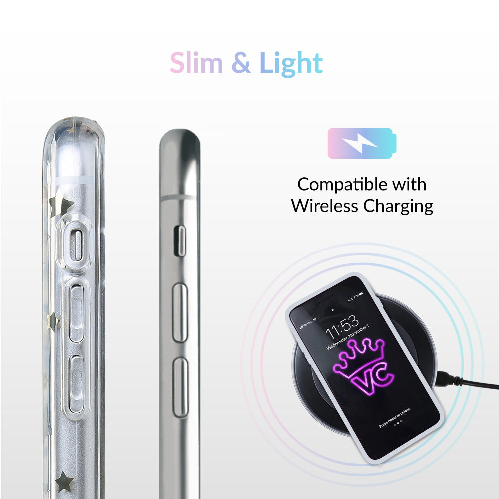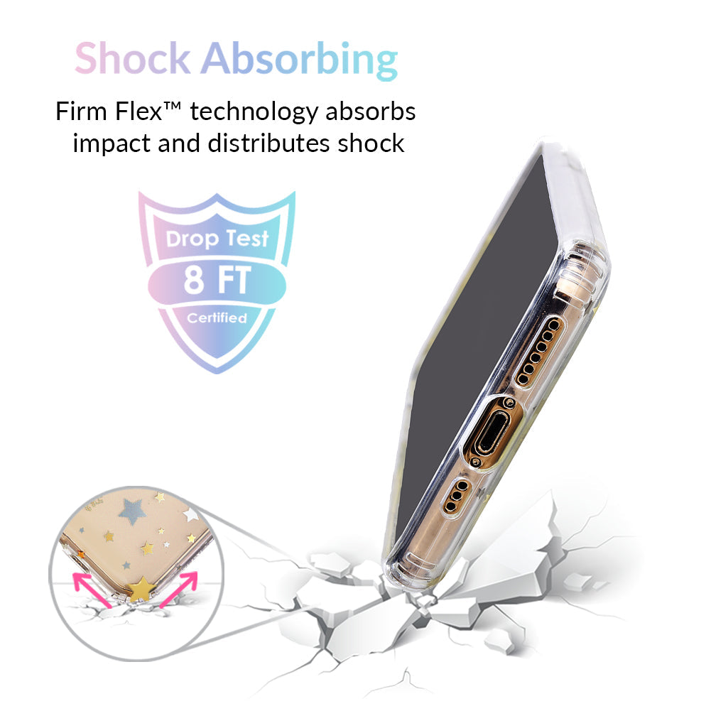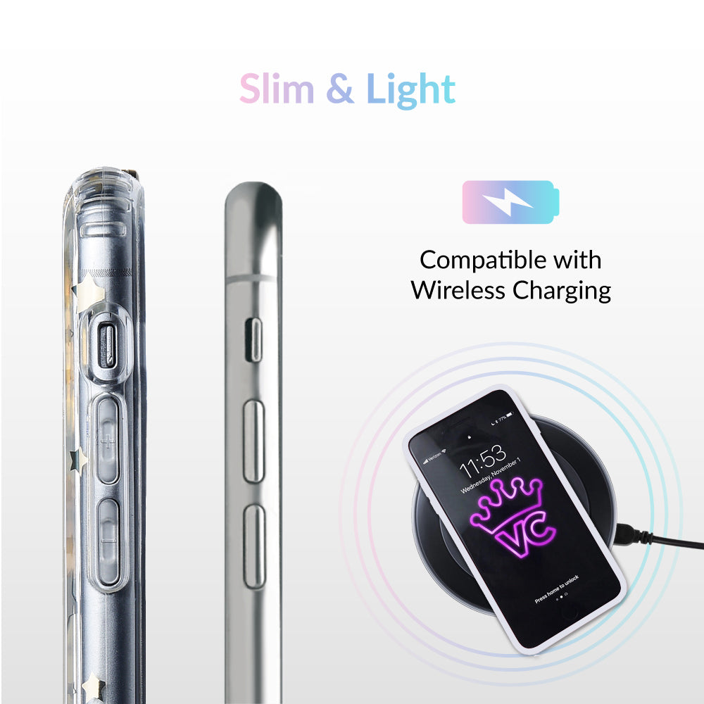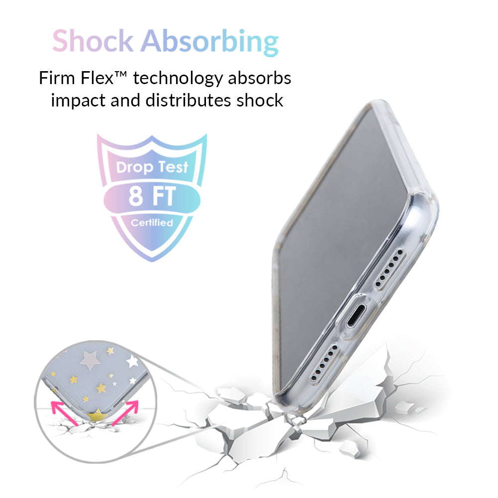 Inspired by our love for the outer galaxy and mysteries of the universe! Featuring a double-layered gold and silver chrome pattern of hand-drawn stars and moons.