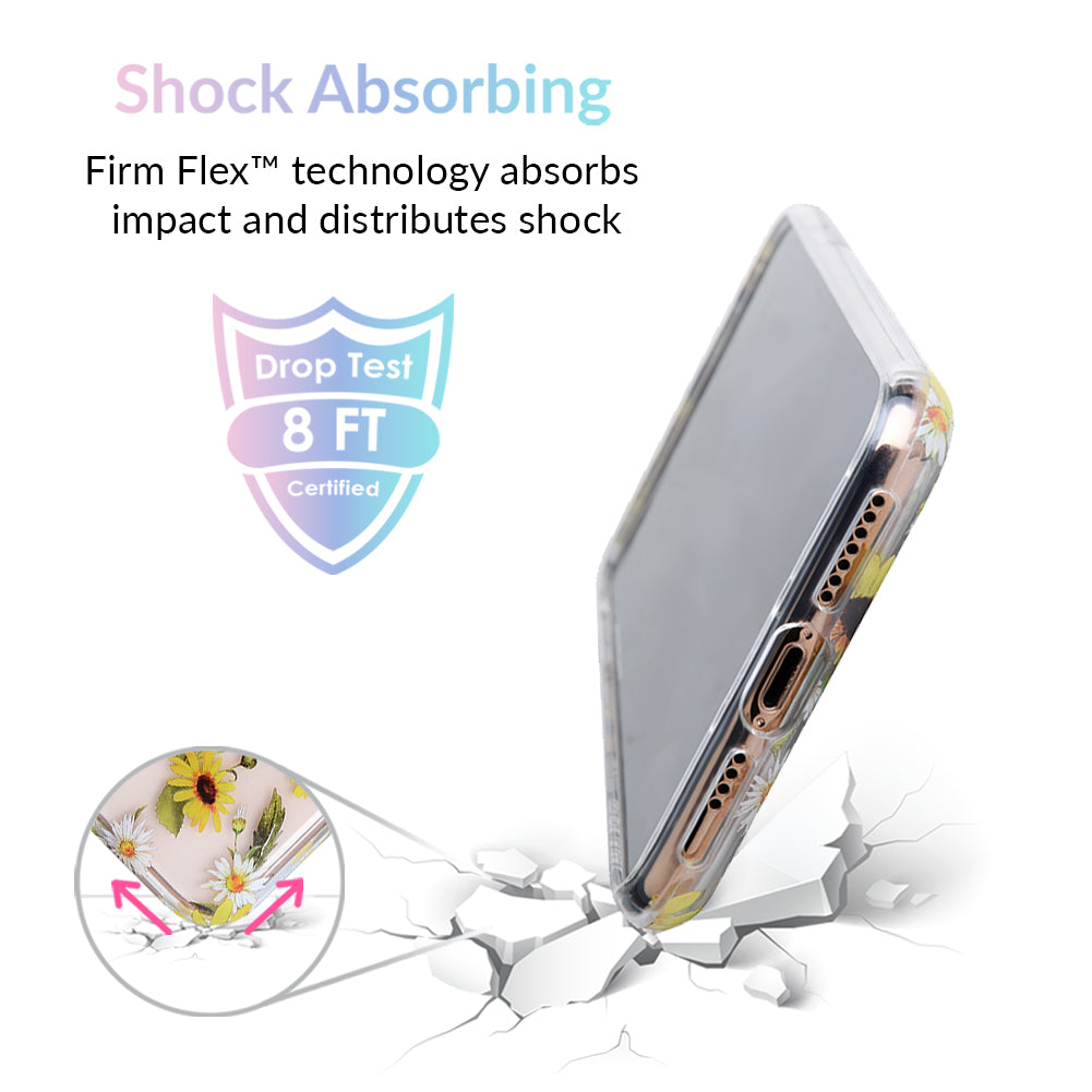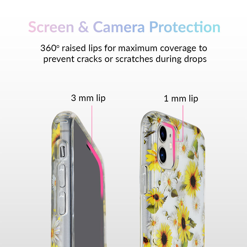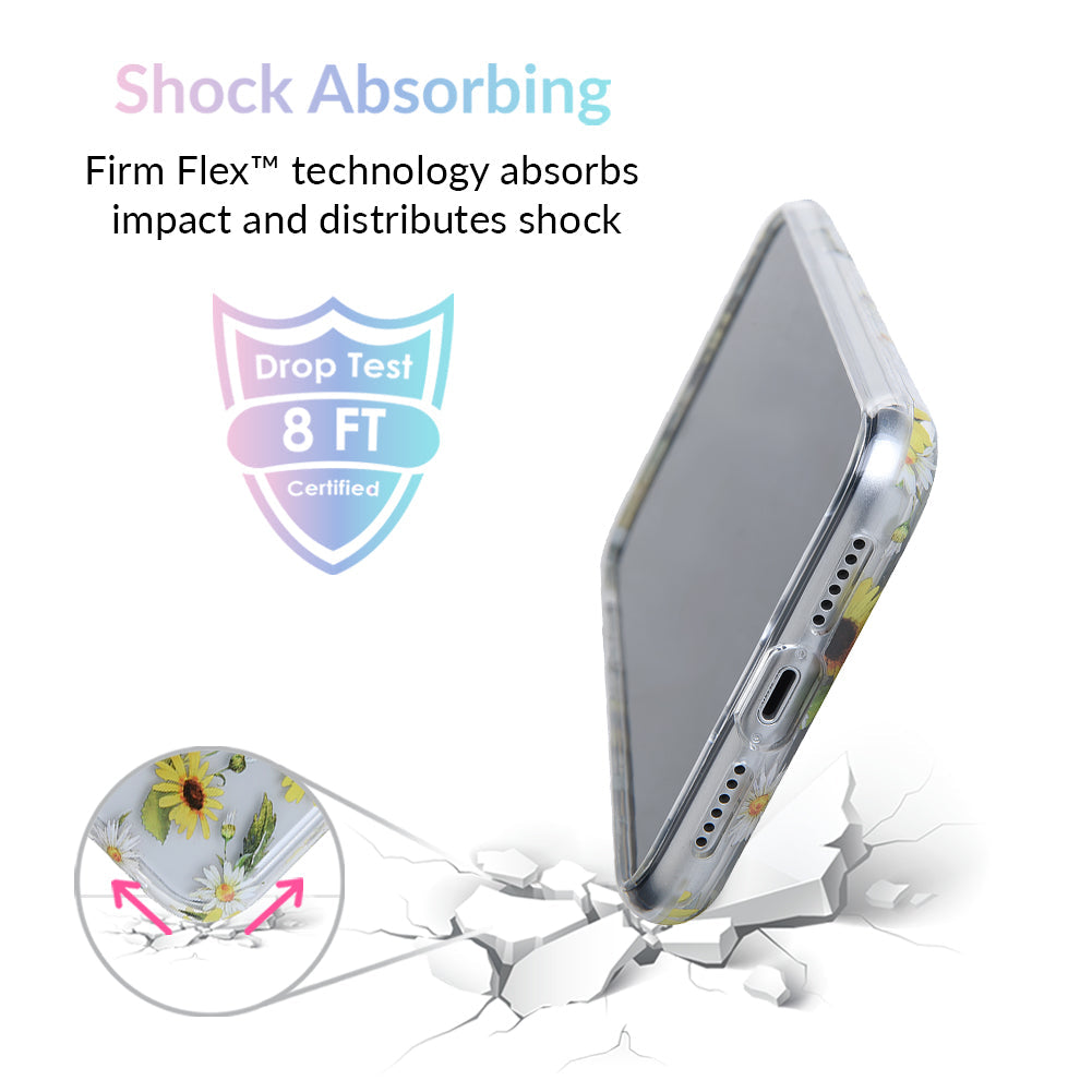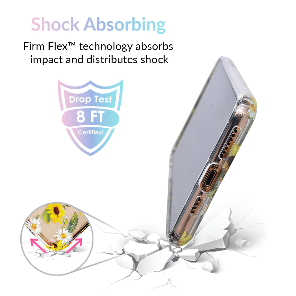 Smell the flowers with our Sunflower Daisy! This case has a gorgeous hand-drawn sunflower & daisy pattern with a matching clear bumper for added protection against drops.