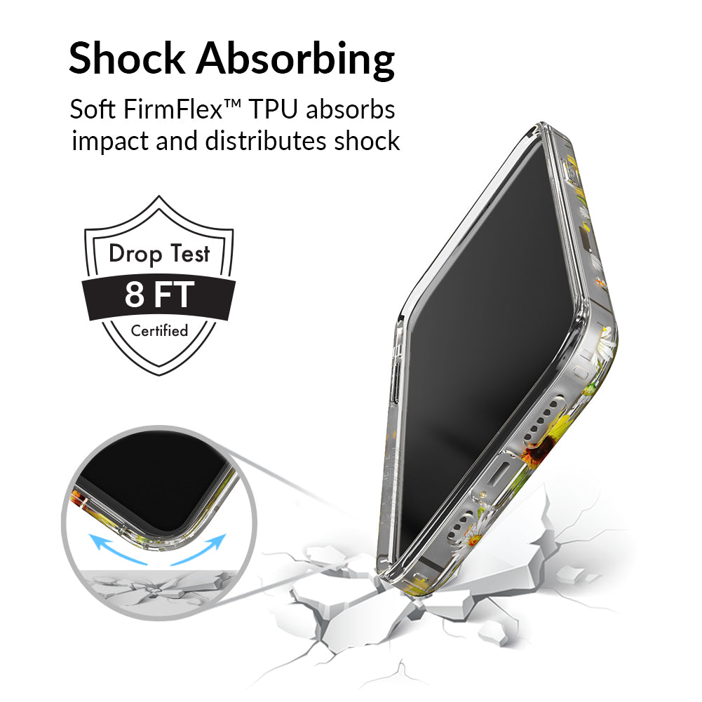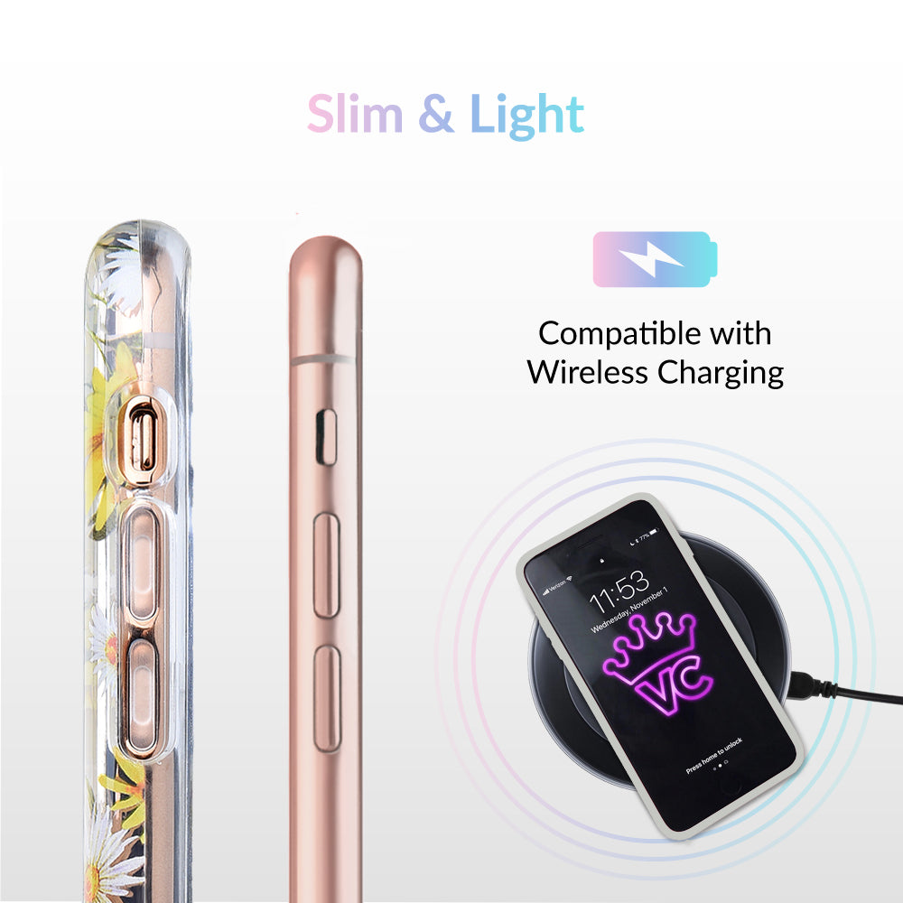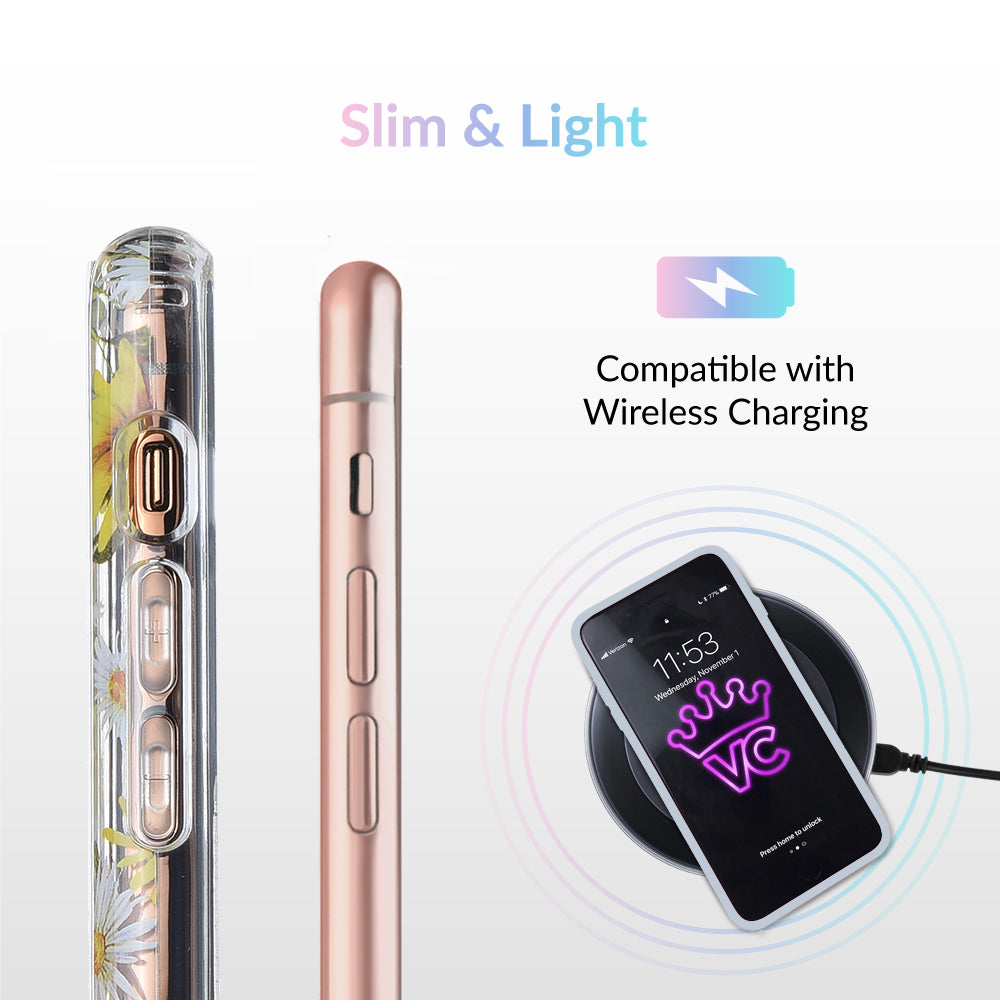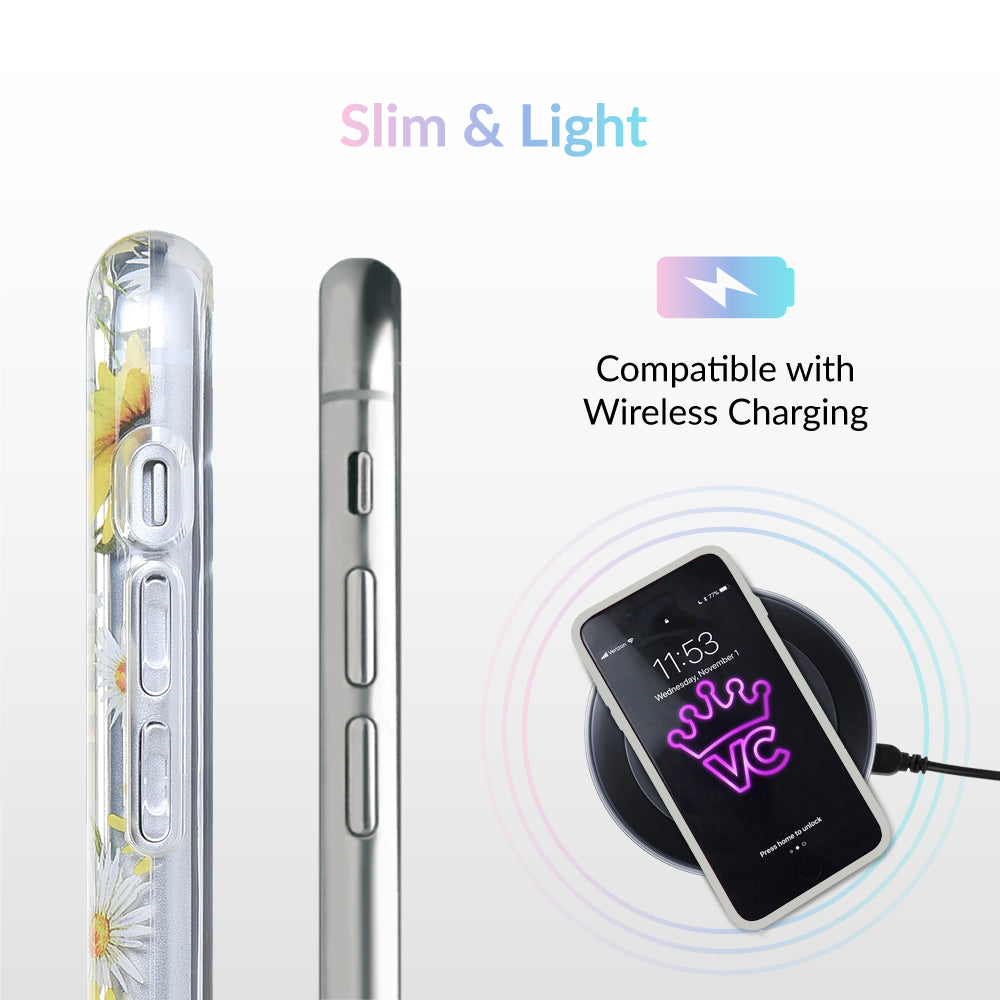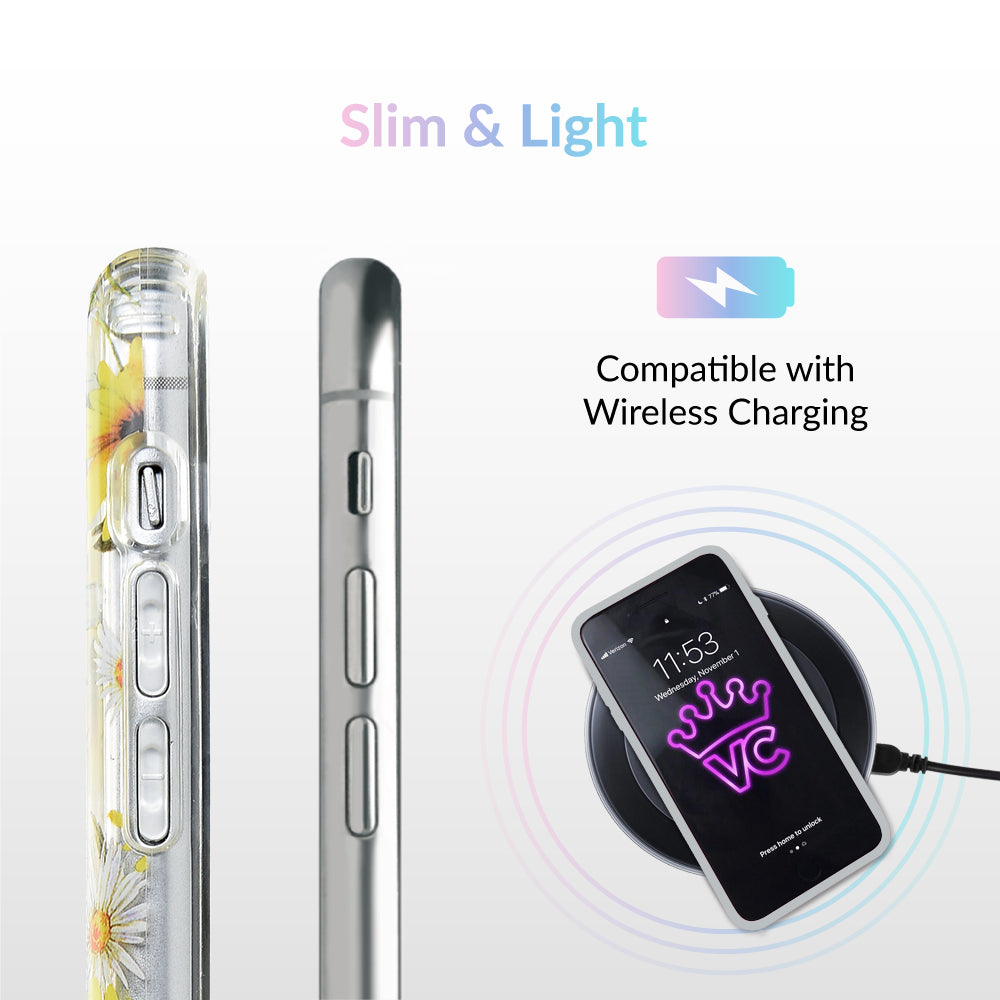 Smell the flowers with our Sunflower Daisy! This case has a gorgeous hand-drawn sunflower & daisy pattern with a matching clear bumper for added protection against drops.