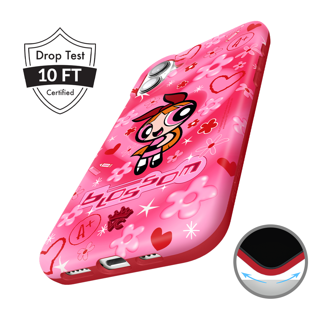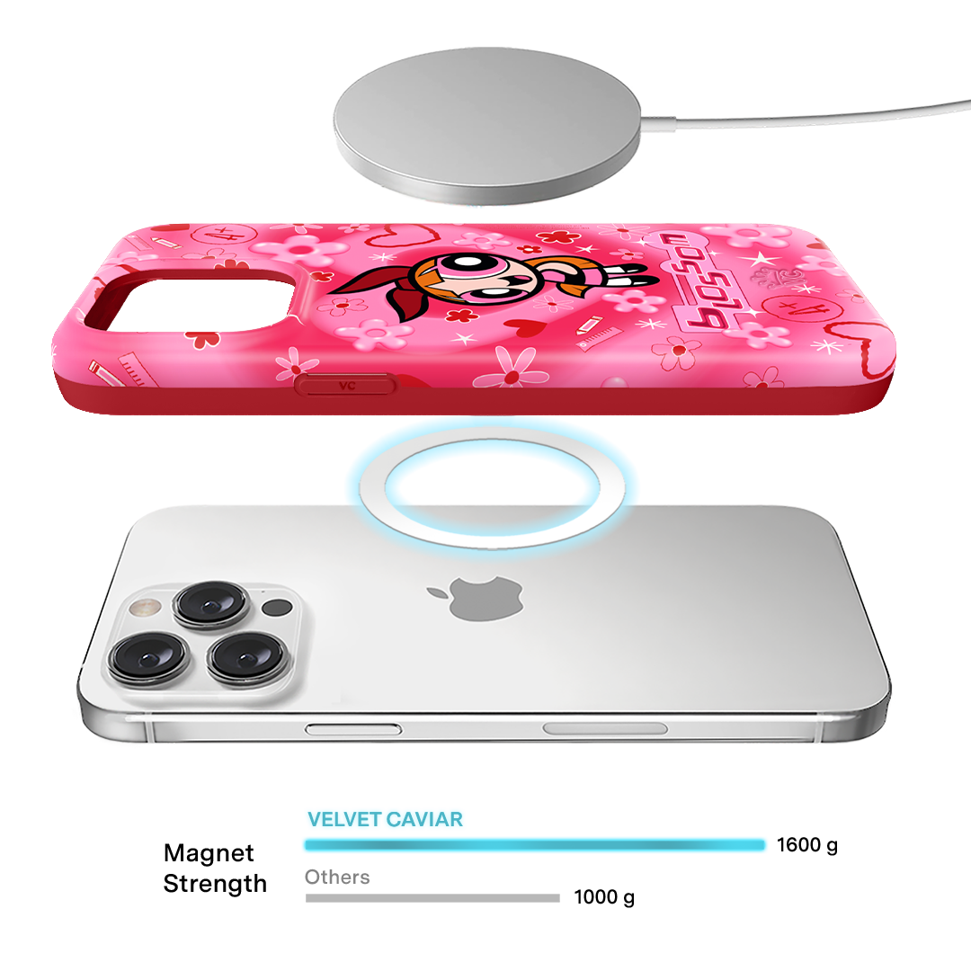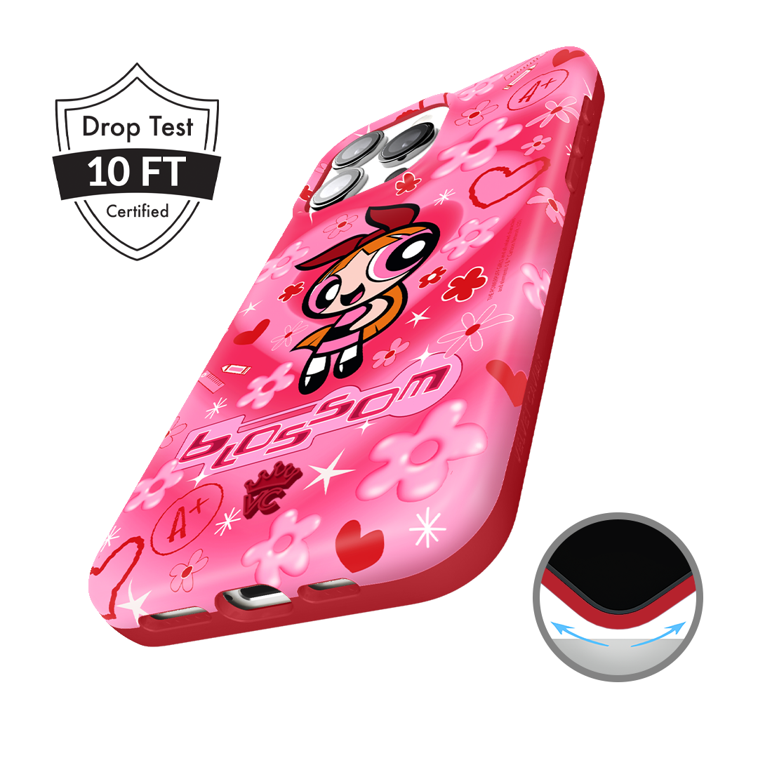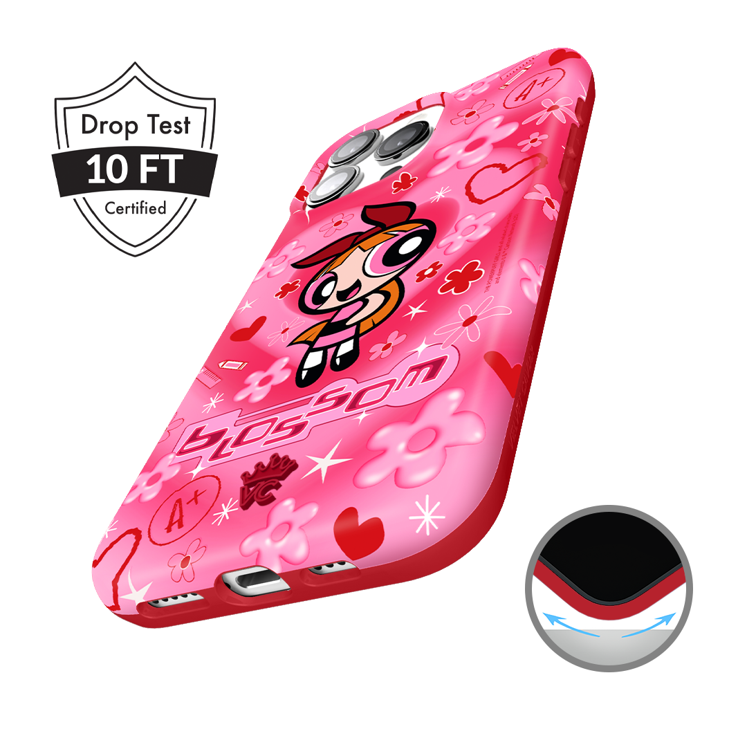 It's Blossom! This glossy MagSafe case features Blossom front and center with flowers and hearts sprinkled throughout all on a radiating pink and red heart background.In collaboration with The Powerpuff Girls™