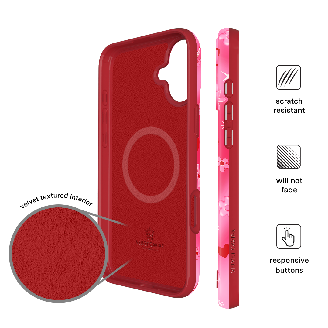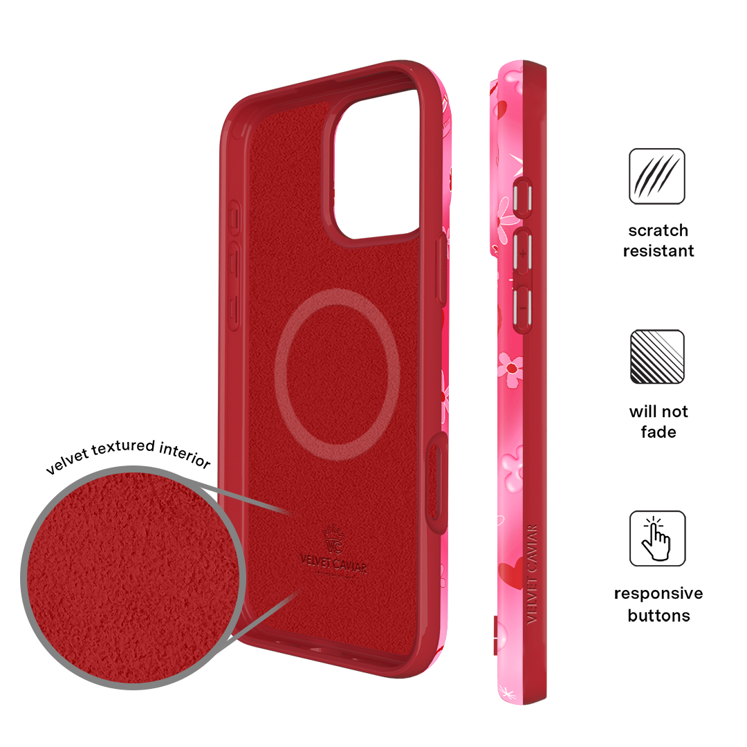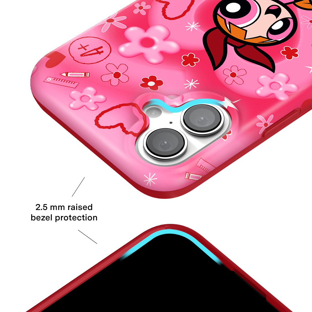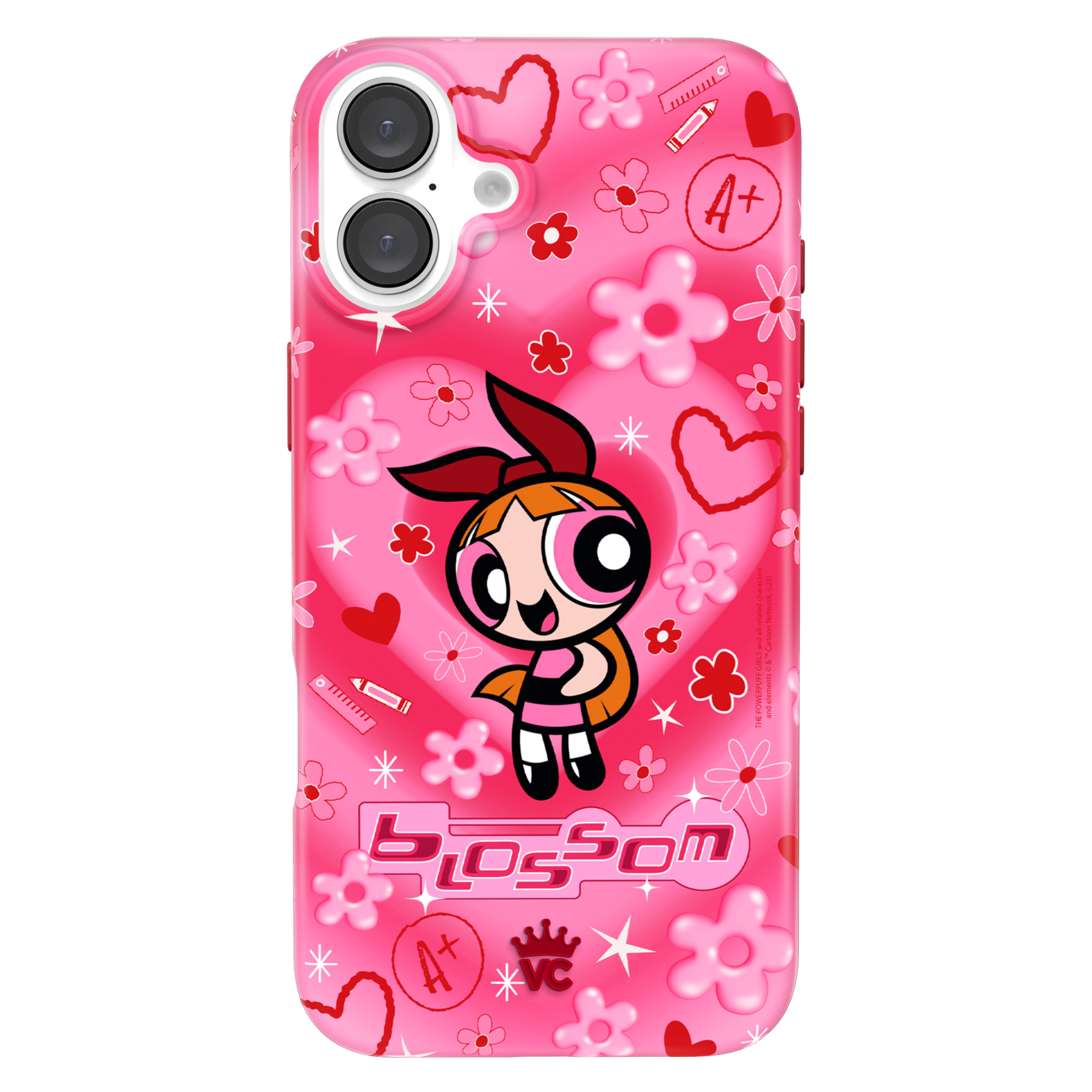 It's Blossom! This glossy MagSafe case features Blossom front and center with flowers and hearts sprinkled throughout all on a radiating pink and red heart background.In collaboration with The Powerpuff Girls™