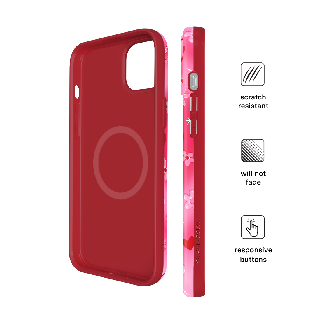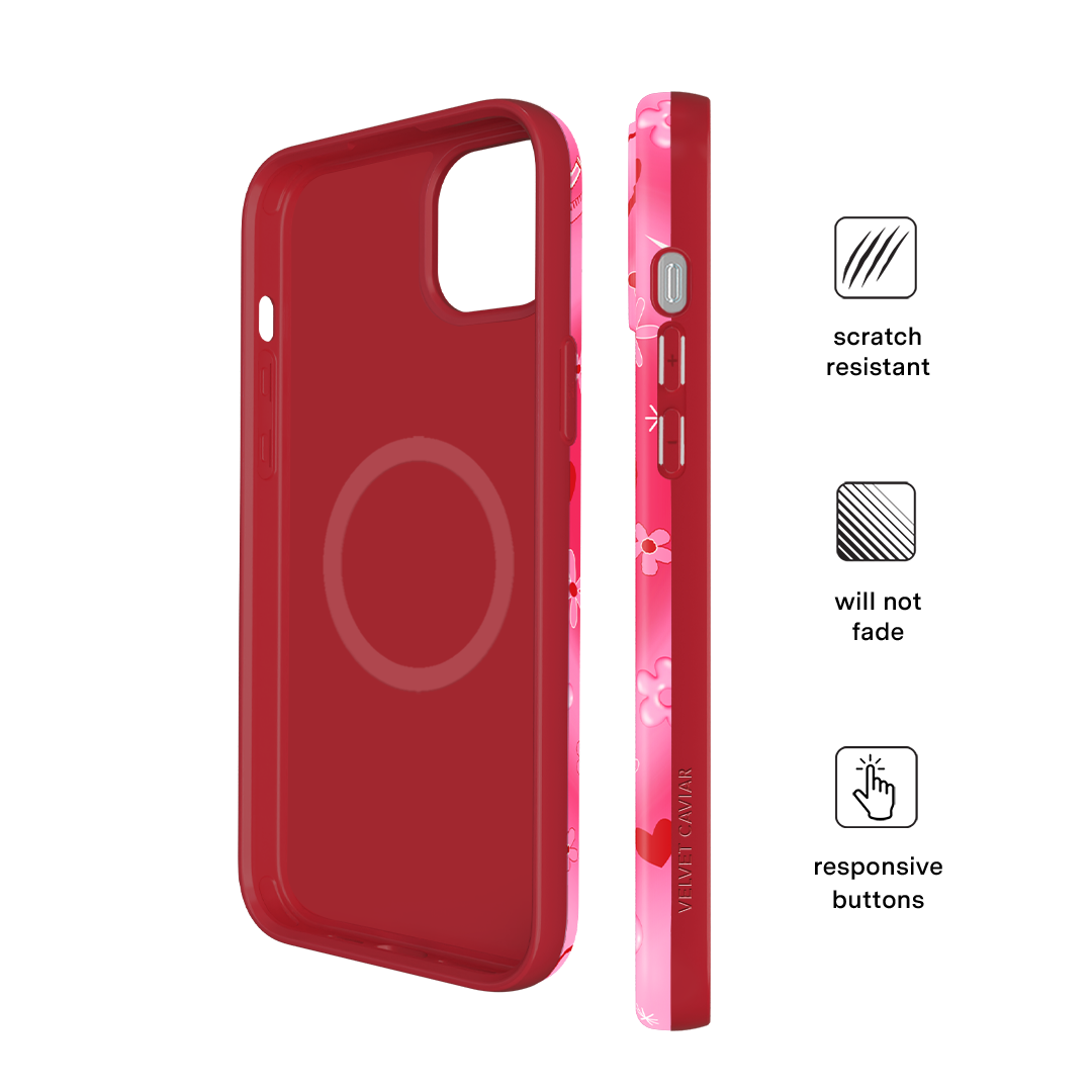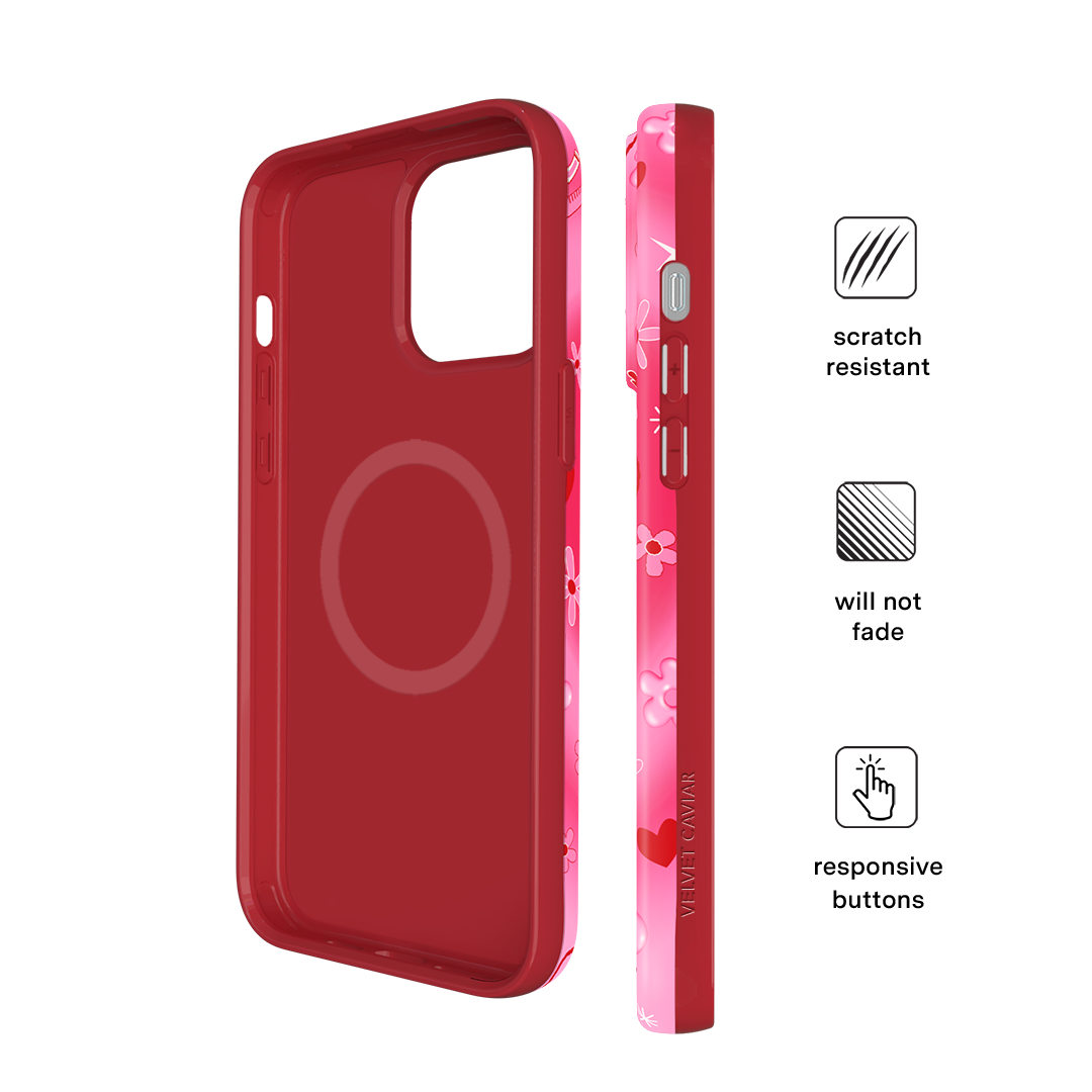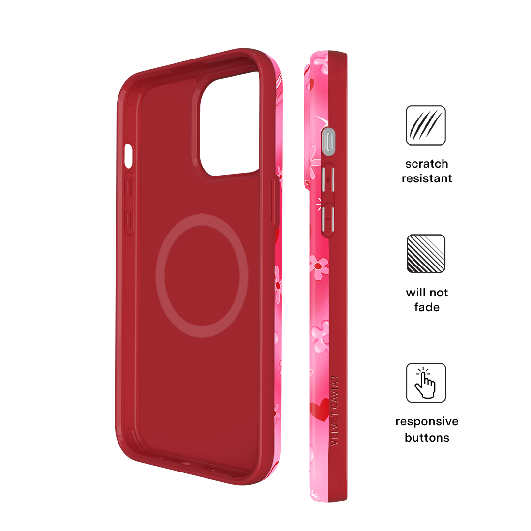 It's Blossom! This glossy MagSafe case features Blossom front and center with flowers and hearts sprinkled throughout all on a radiating pink and red heart background.In collaboration with The Powerpuff Girls™