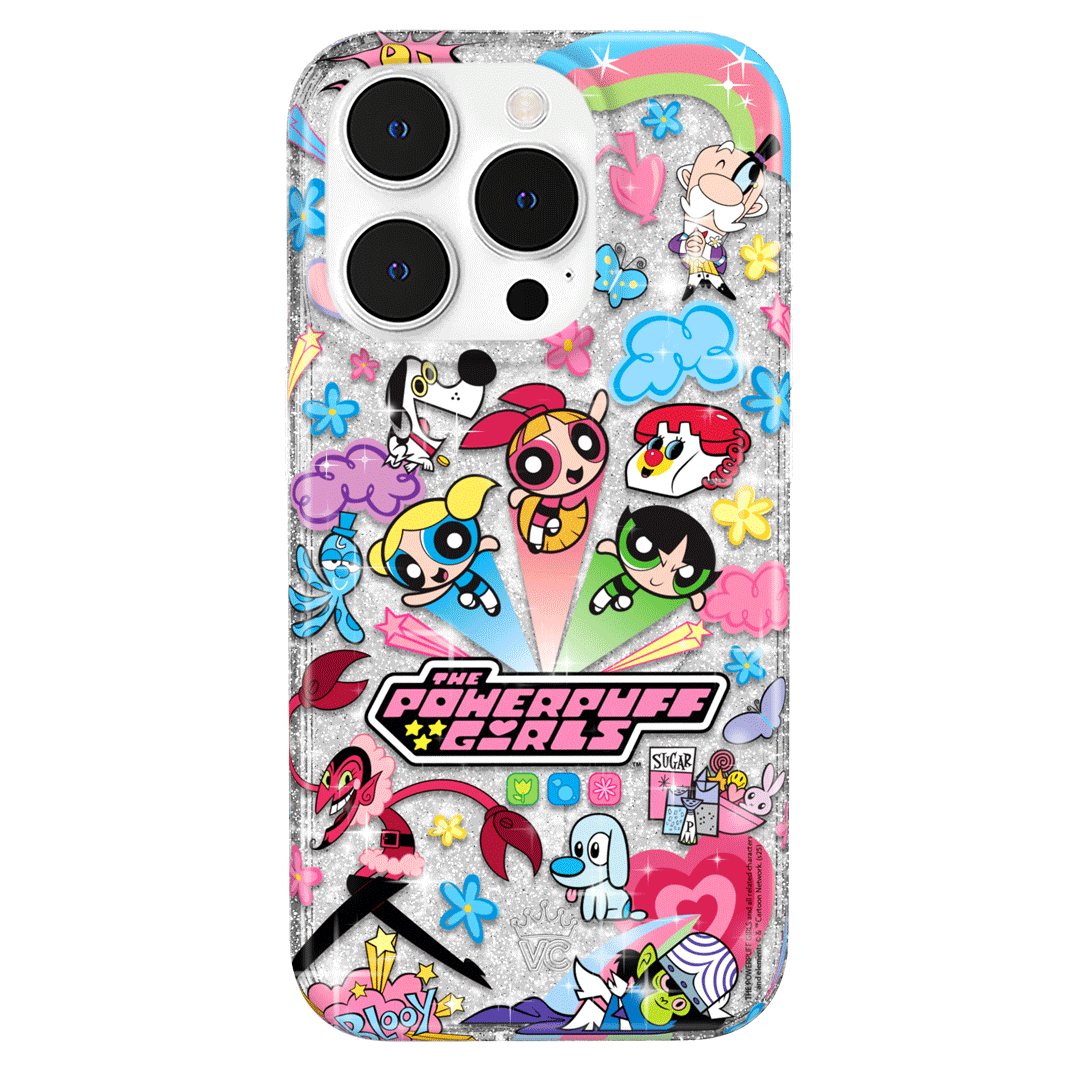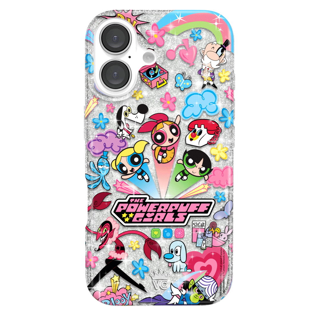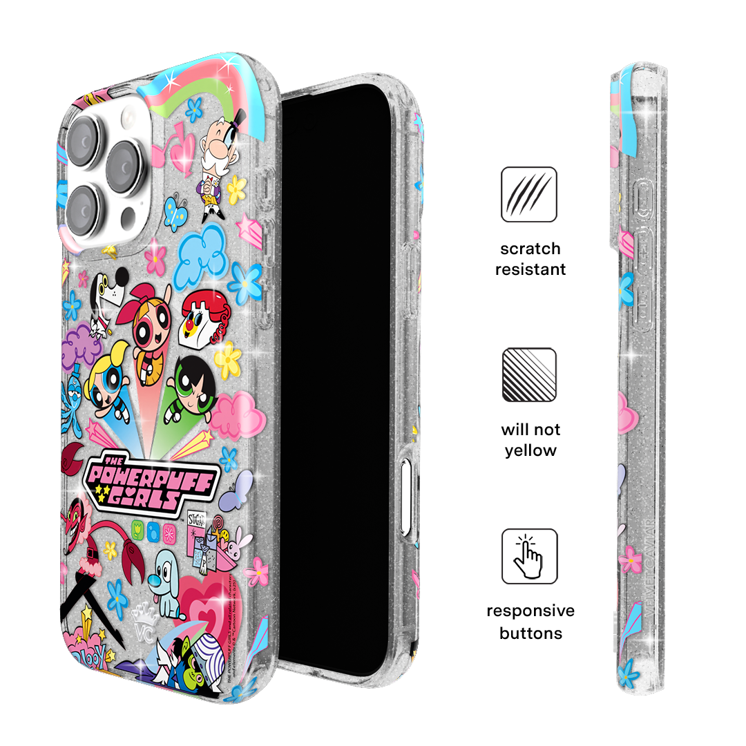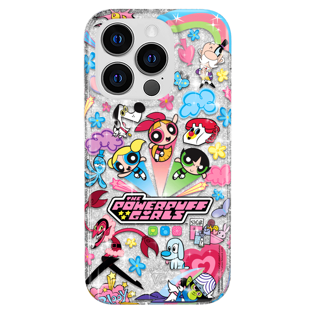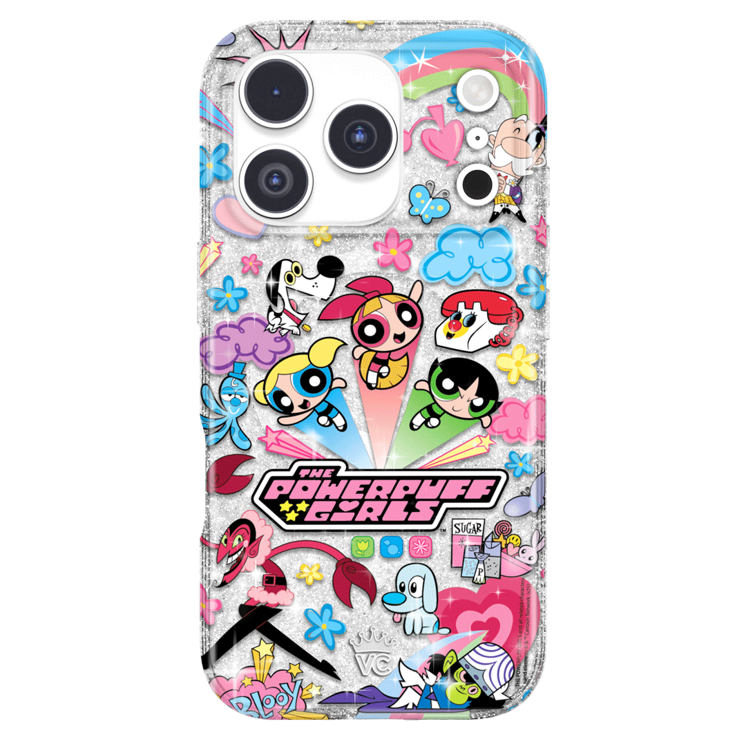 This MagSafe case features Blossom. Bubbles. and Buttercup with an array of nostalgic nods to The Powerpuff Girls all on a clear case with silver glitter sprinkled into the base and bumper.In collaboration with The Powerpuff Girls™