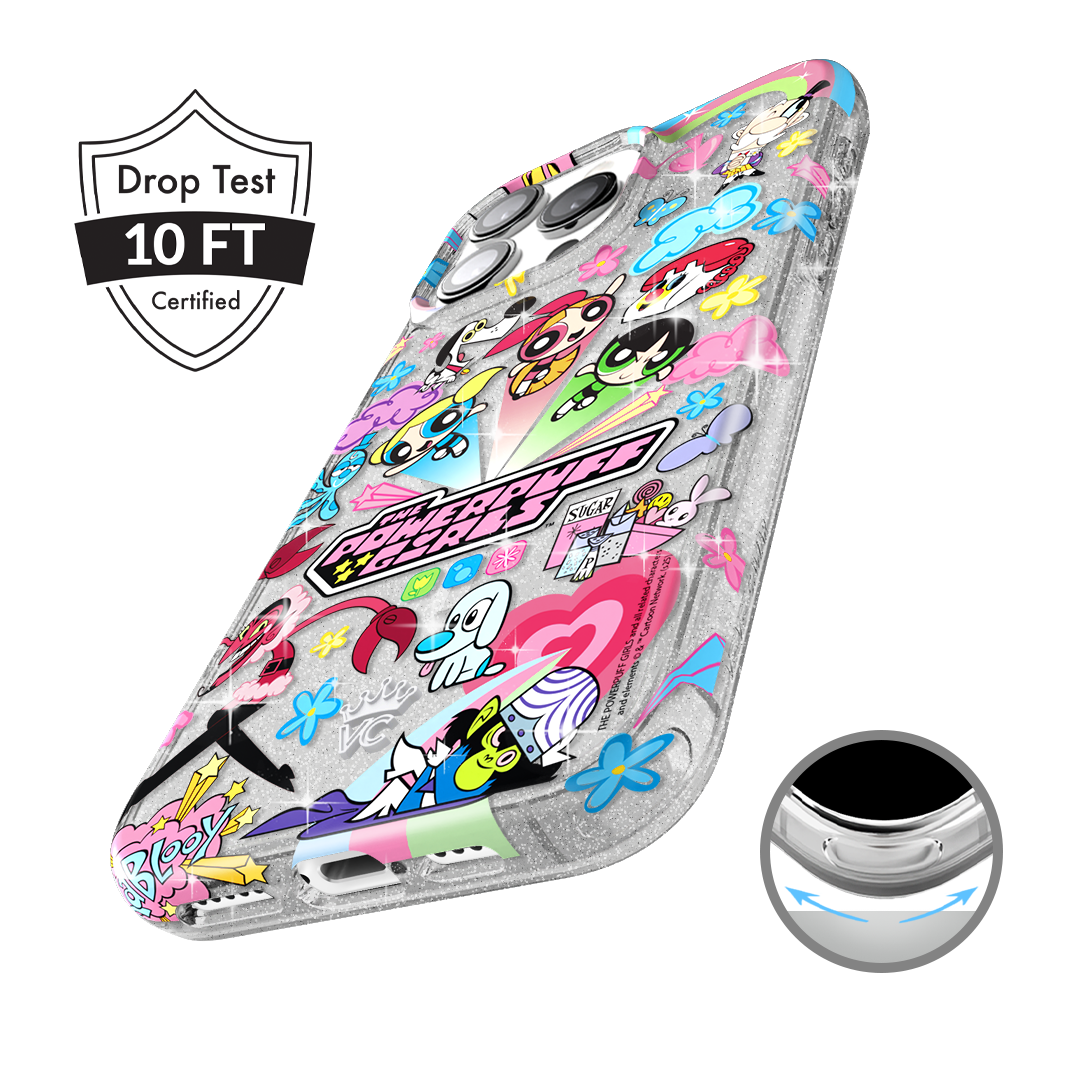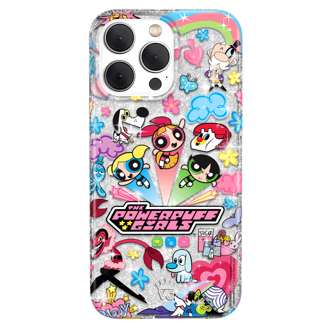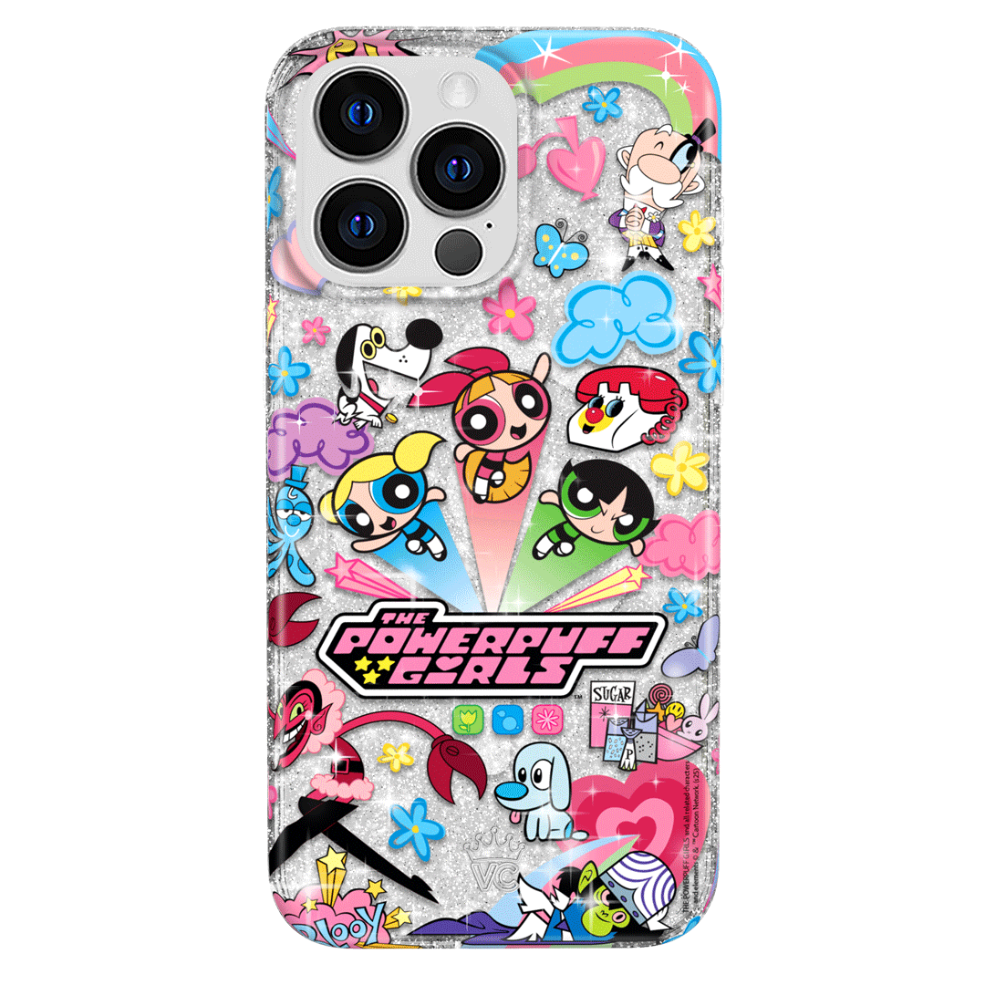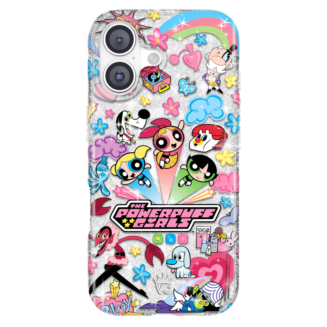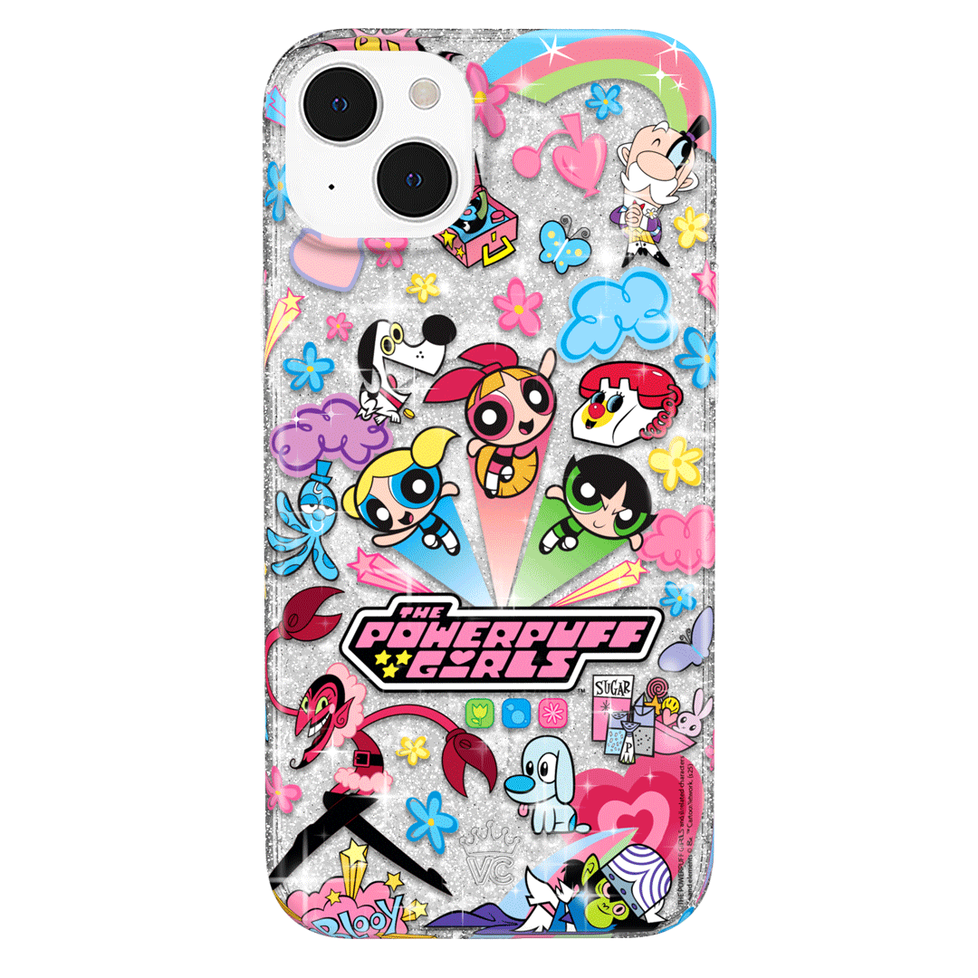 This MagSafe case features Blossom. Bubbles. and Buttercup with an array of nostalgic nods to The Powerpuff Girls all on a clear case with silver glitter sprinkled into the base and bumper.In collaboration with The Powerpuff Girls™
