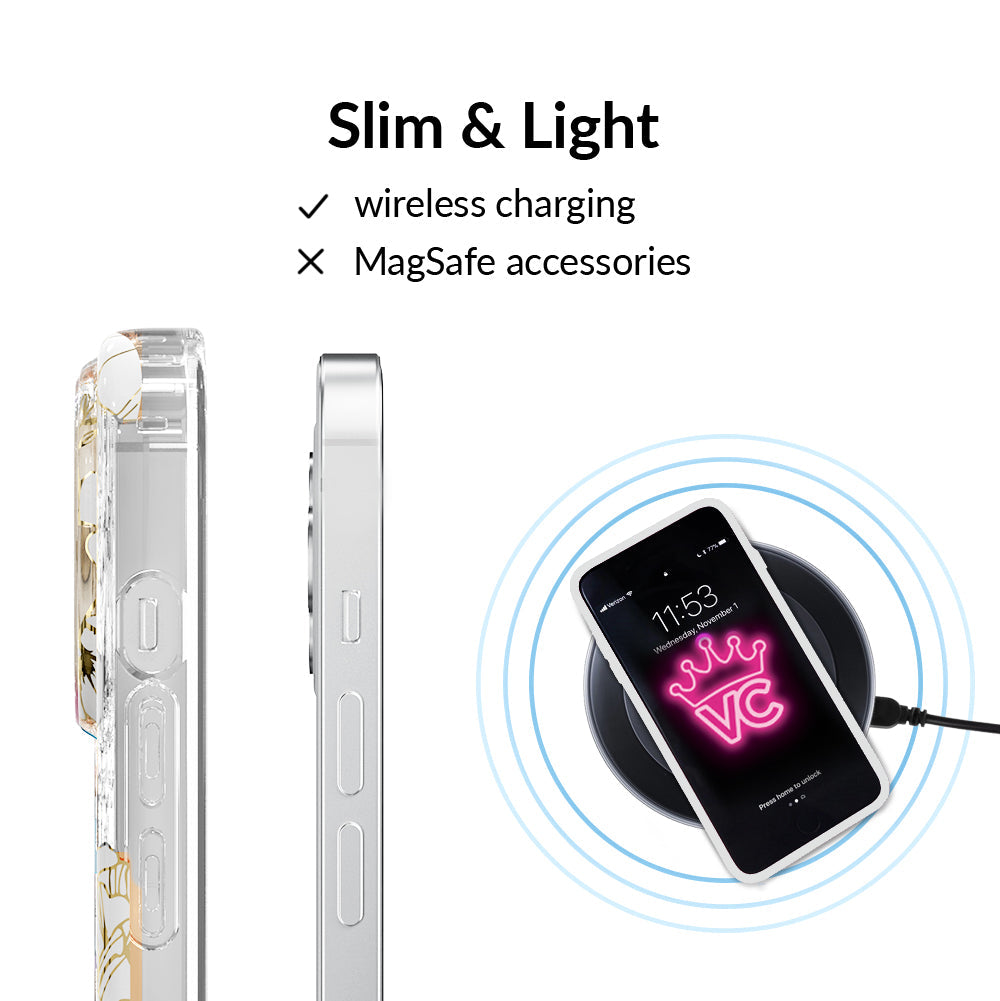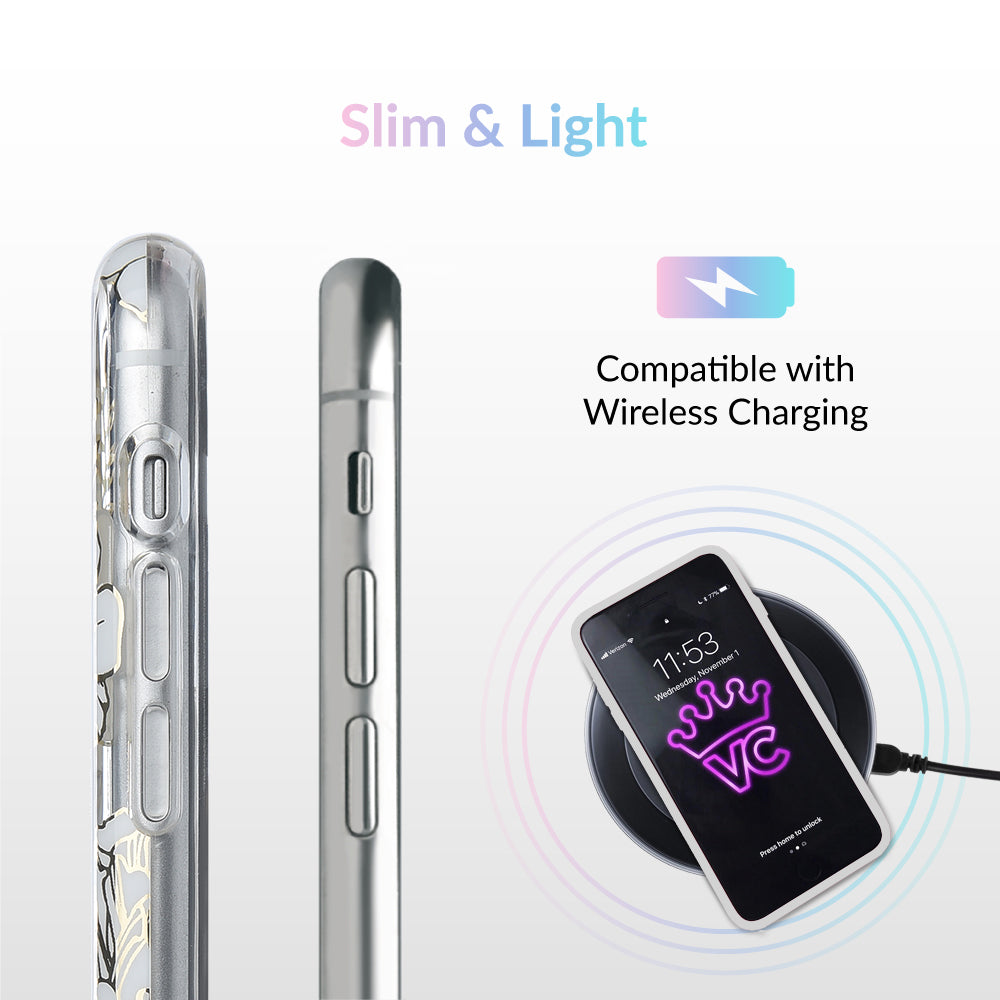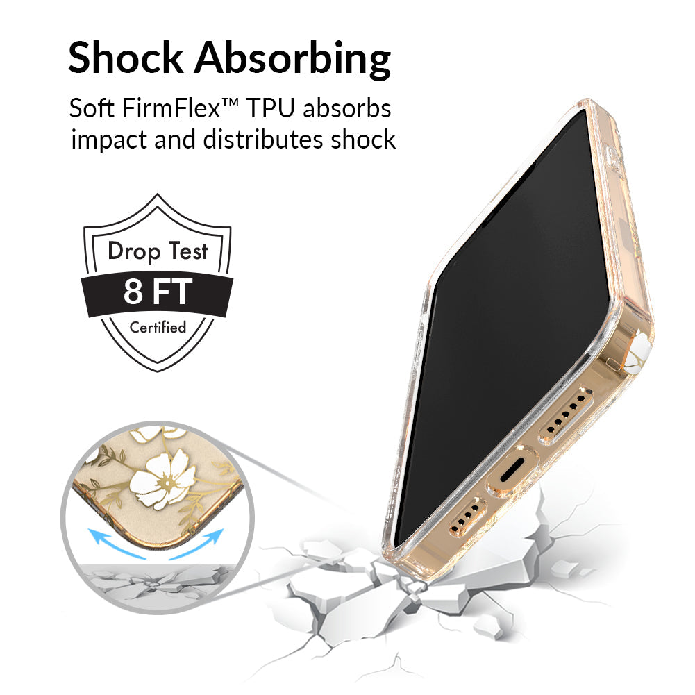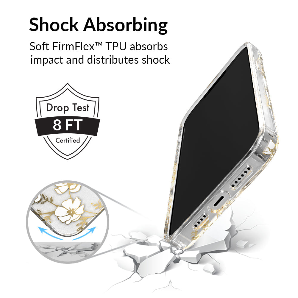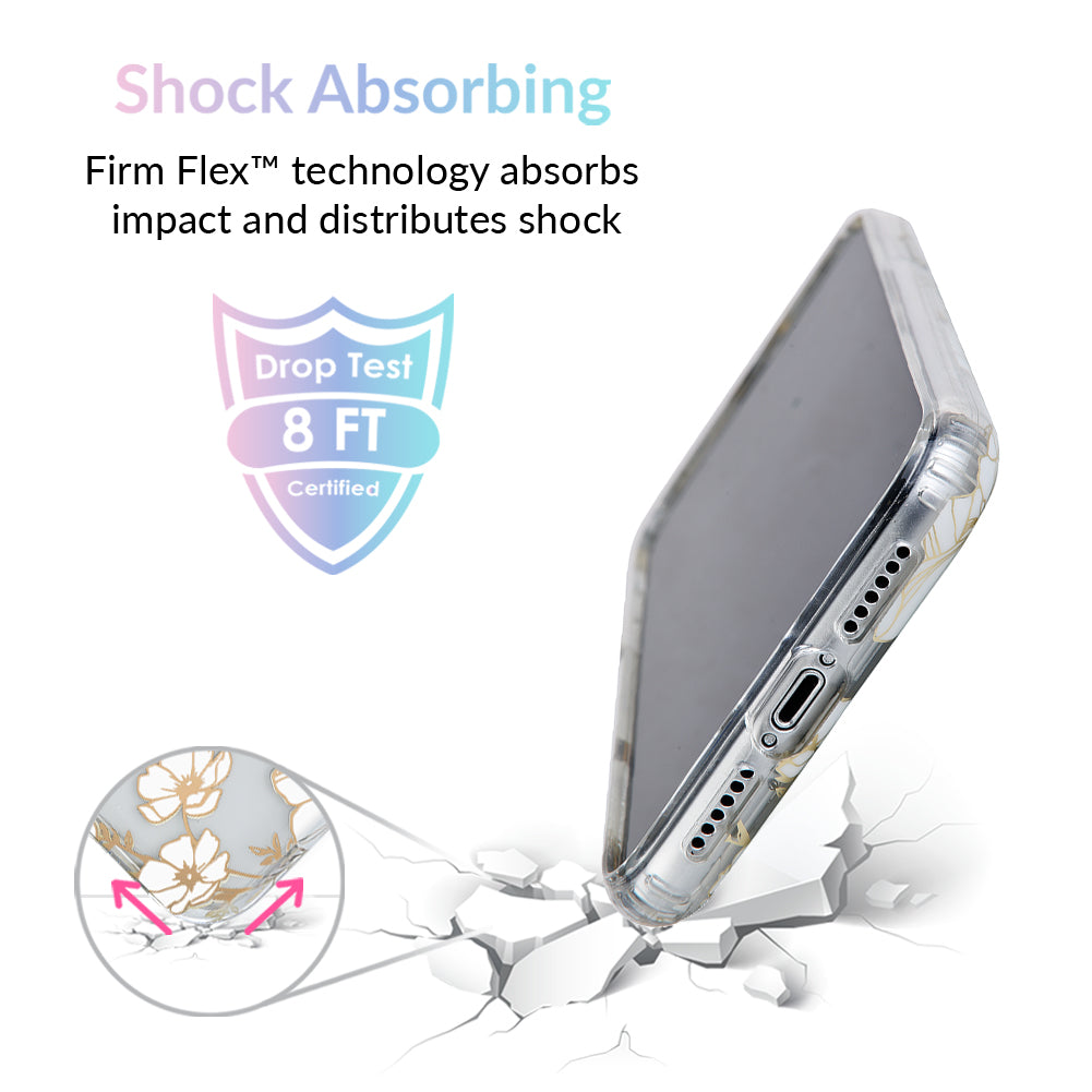 Summer in bloom! This protective clear case is covered in beautiful. hand drawn flowers with delicate. metallic gold detailing.