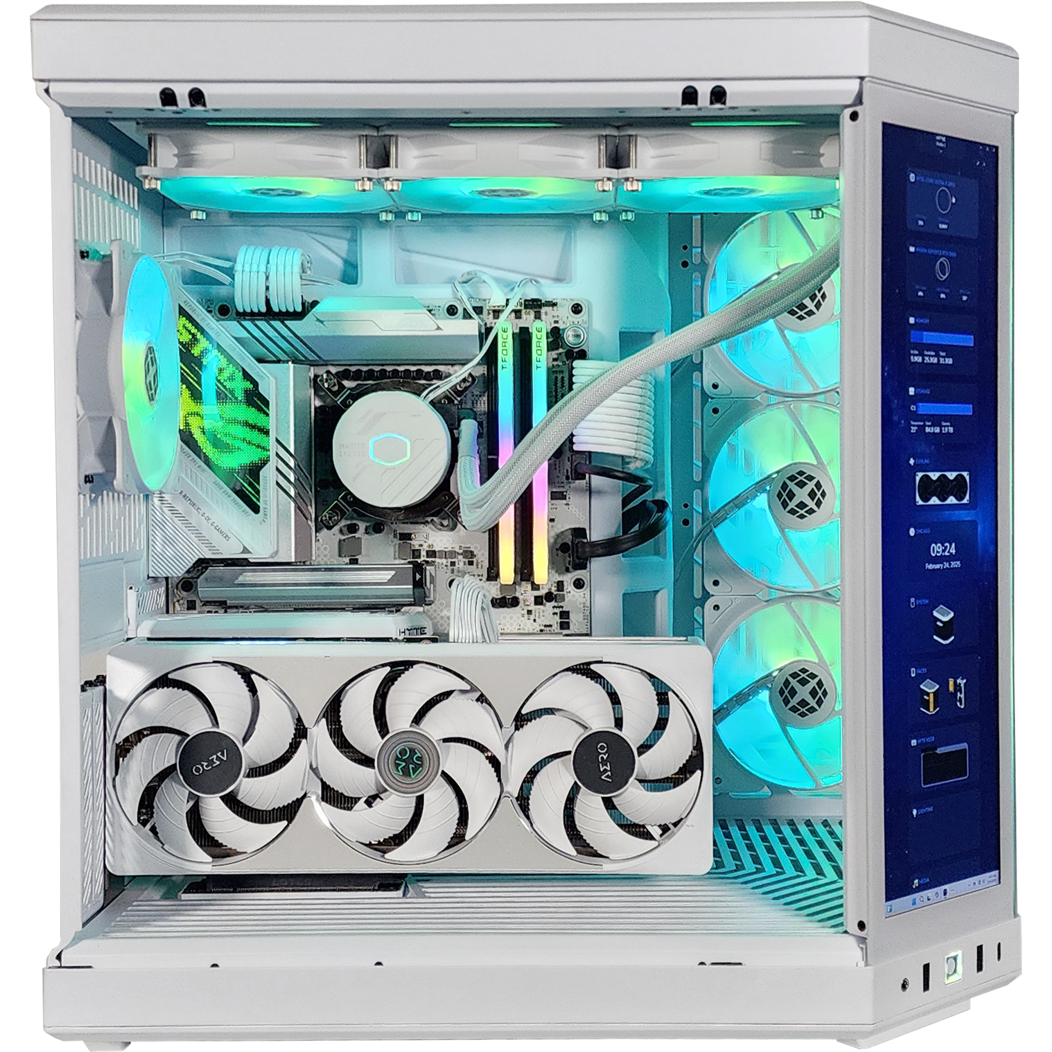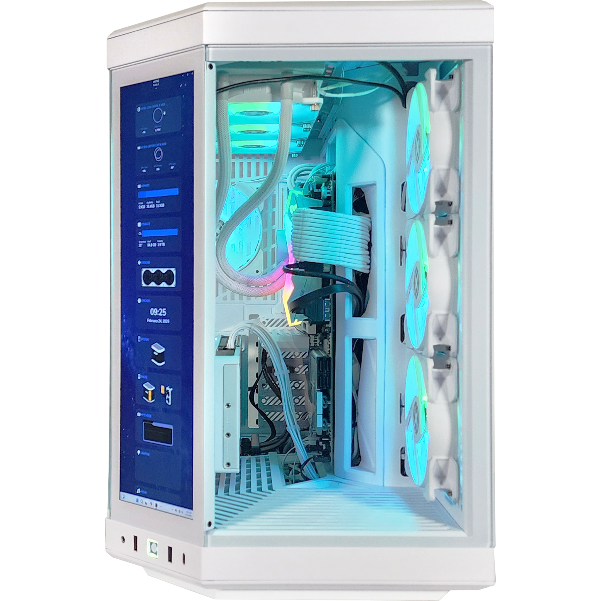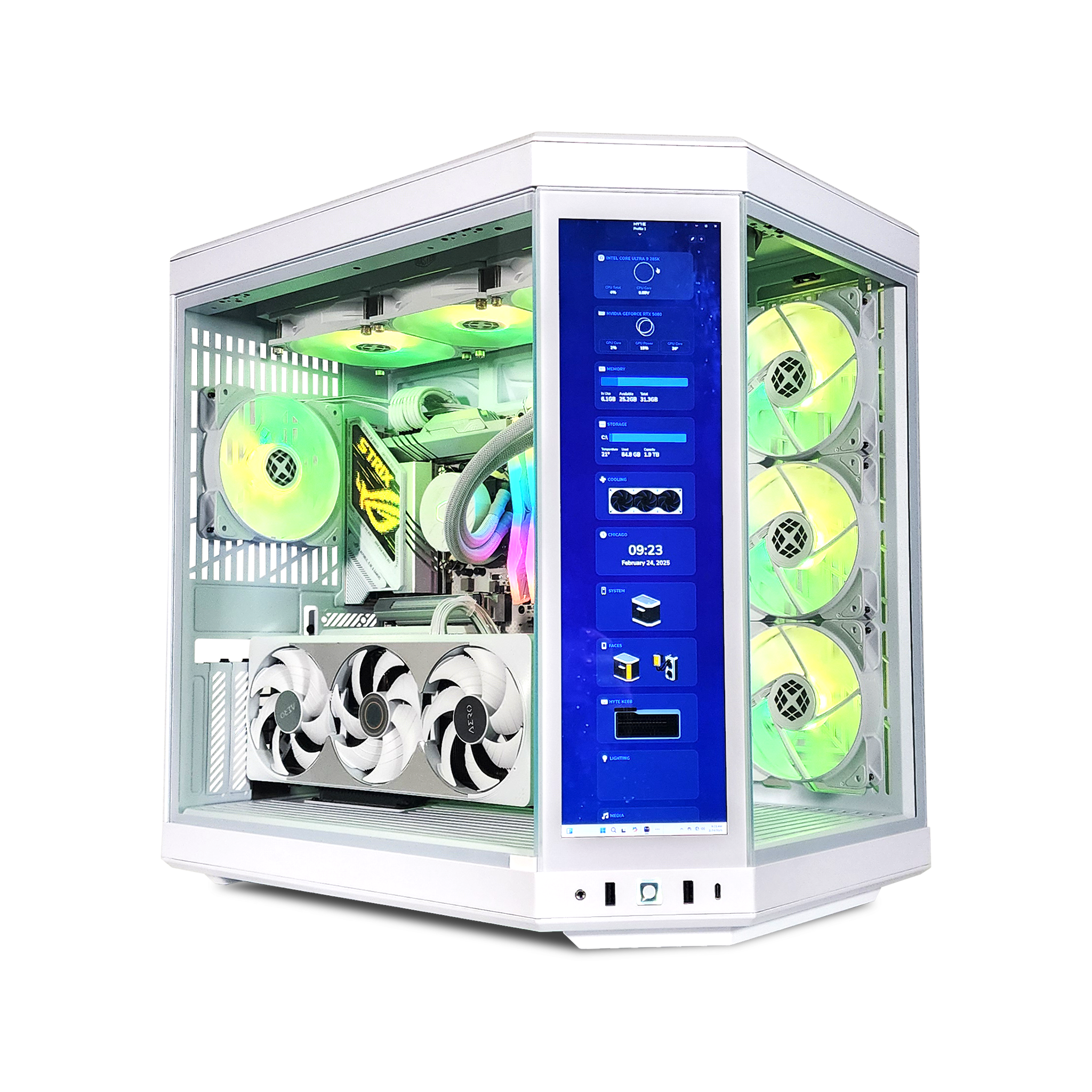 Cooling is on another level with a 360mm AIO water cooler and Fractal Aspect RGB fans. all working in sync with the Y70's signature Y-series ventilation system for max airflow. Tool-free removable panels. extensive cable management. and floating storage sleds make upgrades effortless. And with a 14.9 2.5K touchscreen display. you have next-level control at your fingertips.
