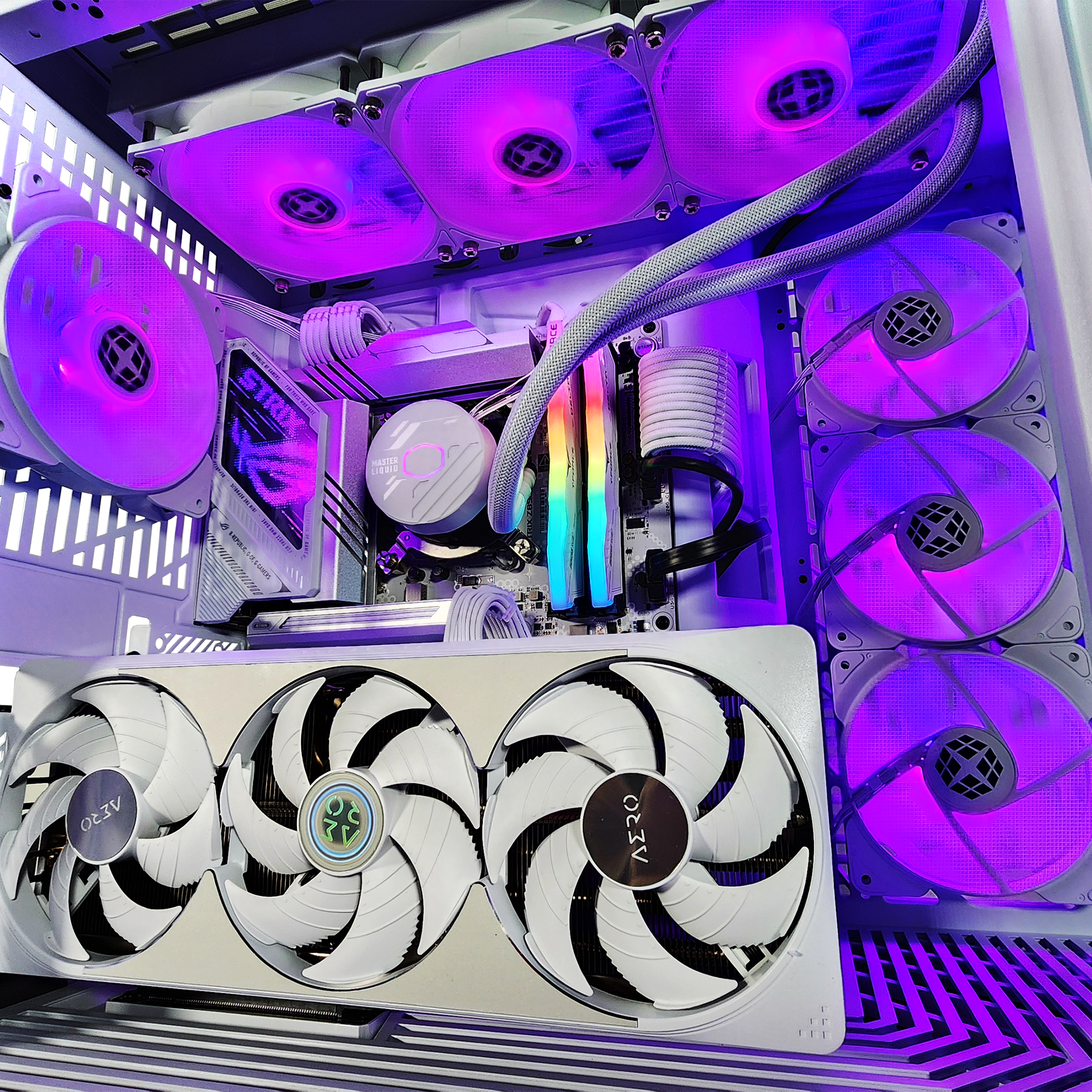 Under the hood. the Intel® Core™ Ultra 9 285K delivers 24 cores of raw power. pushing speeds up to 5.7GHz for seamless multitasking and gameplay. The ASUS ROG STRIX Z890-A GAMING WIFI motherboard ensures top-tier connectivity. while 32GB of DDR5 5200MHz T-Force Delta RGB memory keeps everything running at breakneck speeds. Storage? A blazing-fast 2TB NVMe Gen 4 SSD means near-instant load times.