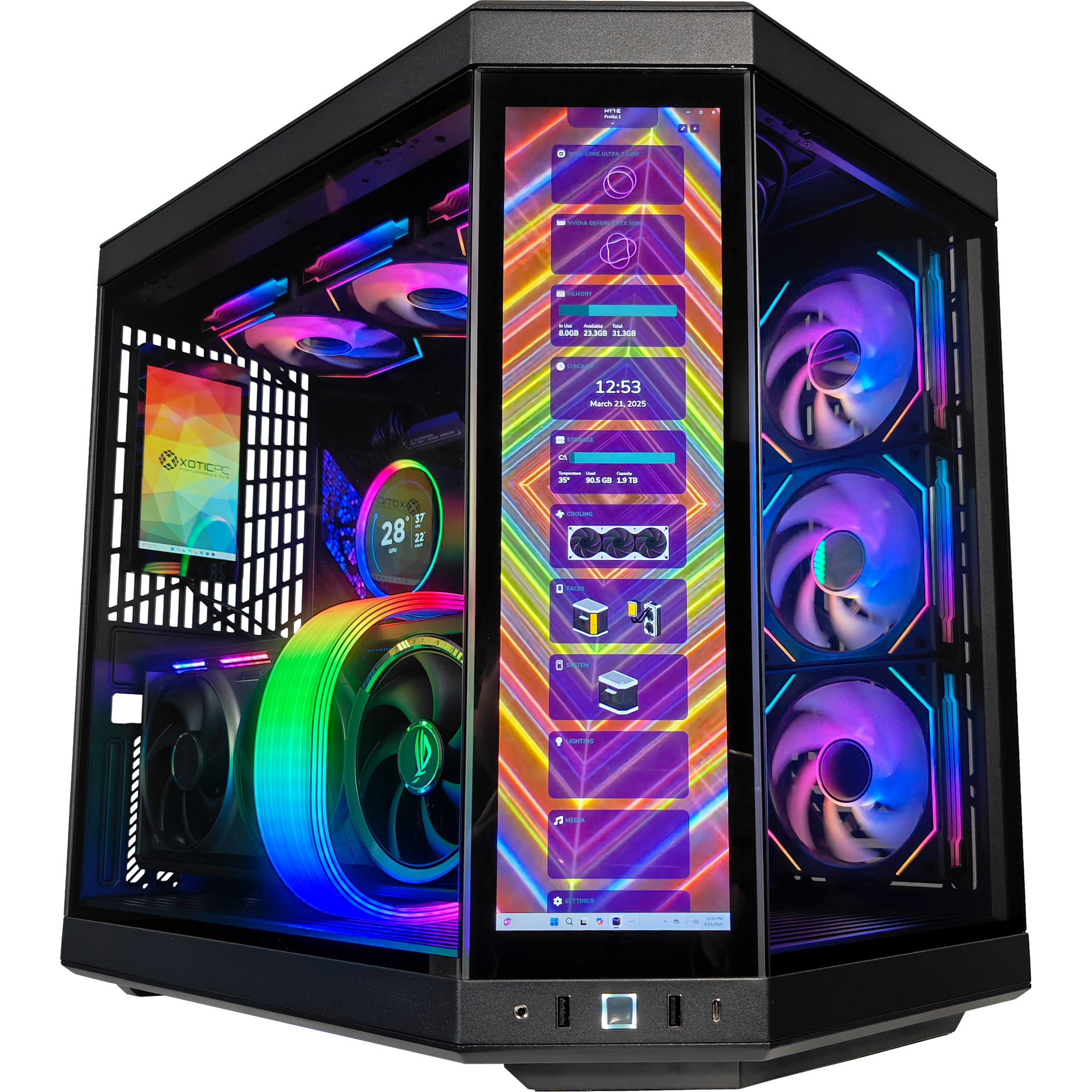 Every detail is engineered for convenience. from tool-free panels and floating storage sleds to extensive cable management with reusable Velcro straps. Take full control with dual interactive displays—a 14.9 2.5K touchscreen and a 5.5 mini LCD—giving you real-time system monitoring and customization at your fingertips.